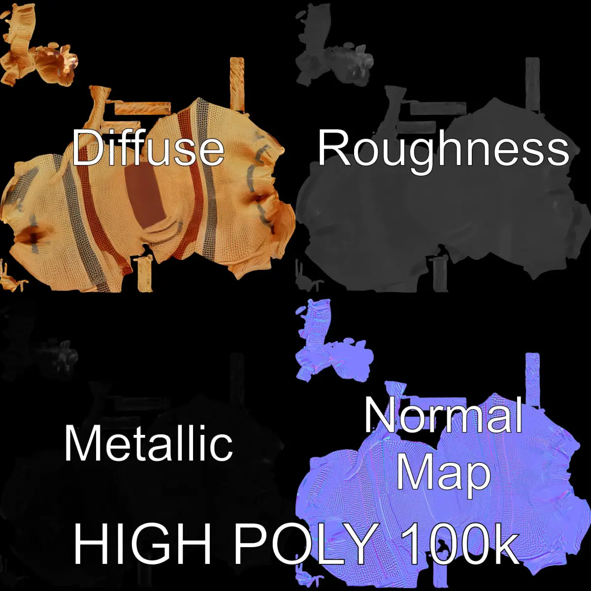 This 3D model pack offers a detailed canvas sack with three levels of detail, making it perfect for use in production rendering, game engines, and interactive presentations. Its versatile design is great for historical settings, adventure games, or as a prop in virtual environments. The PBR textures include Diffuse, NormalMap, and reflection/roughness/metallic, ensuring realism in any modern rendering engine. All textures are 4096x4096 in size, accurately unwrapped with no overlapping UVs.