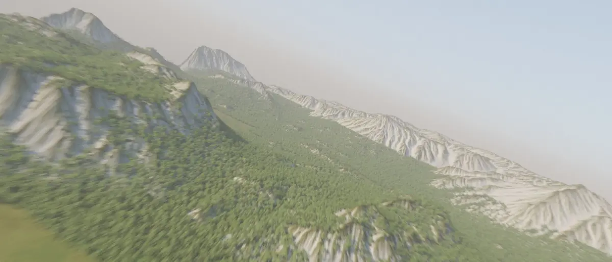 Canyon Grassy Fields, with hills and mountains. There is a high and a low version of the model in FBX and OBJ format and a 3d max file for you to play with.