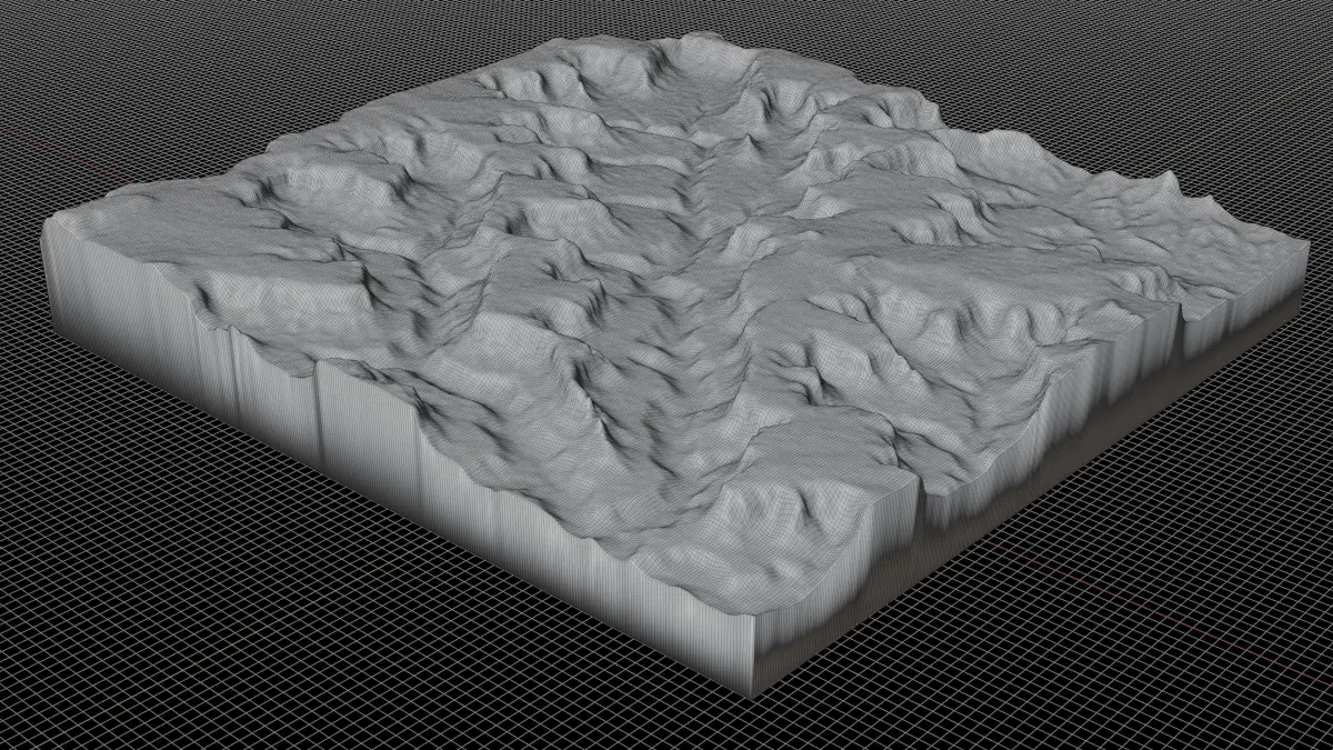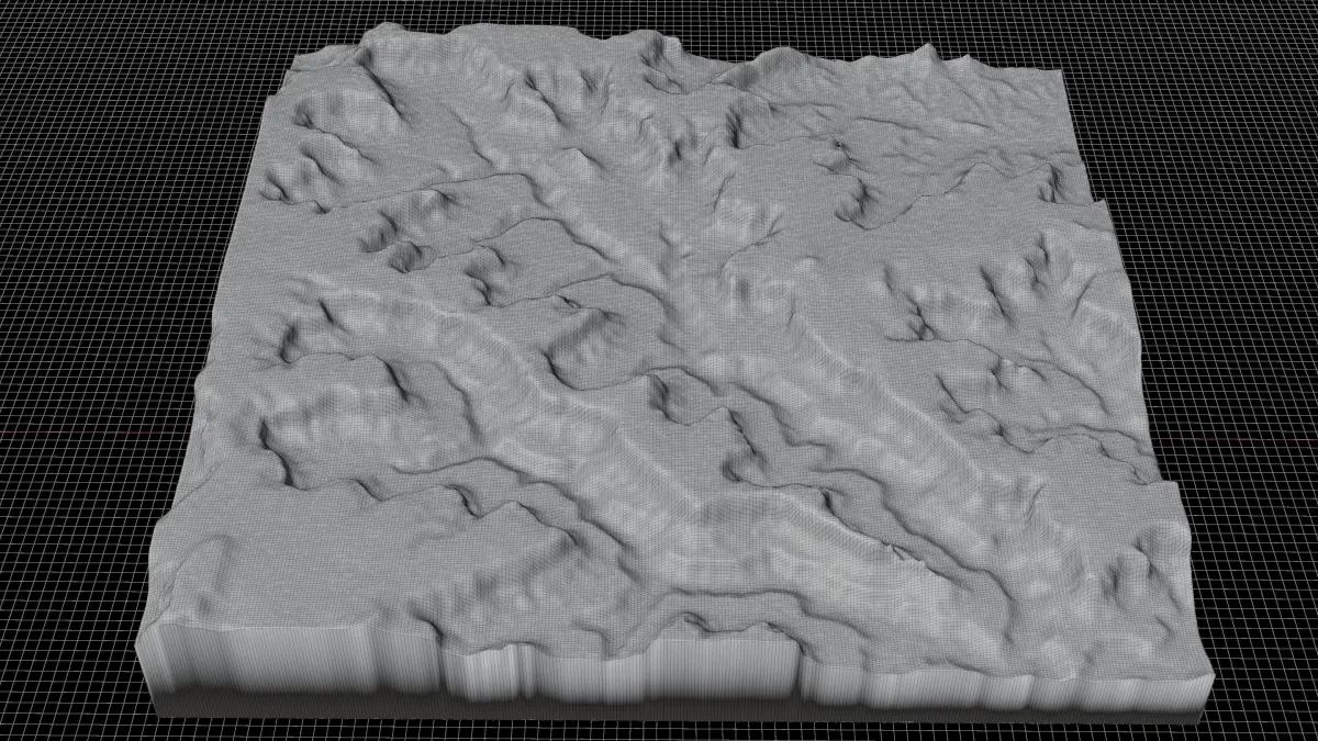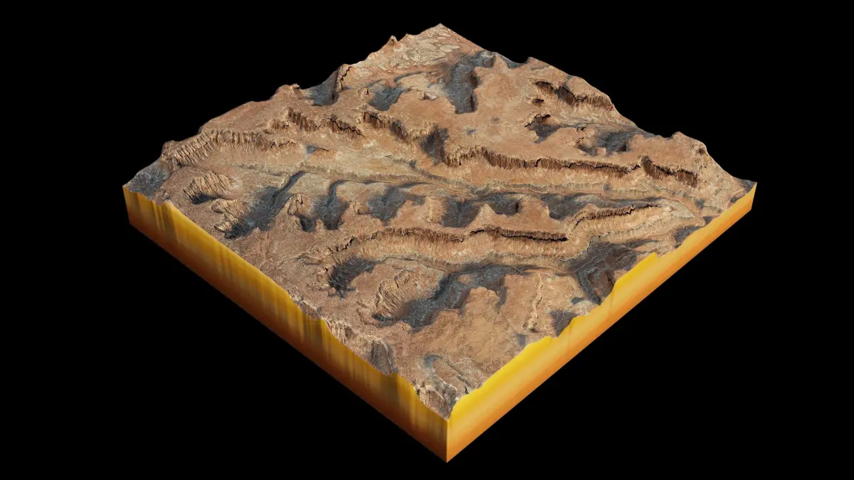 canyon with a barren river and high cliffs on either side of the river 3d model terrain.