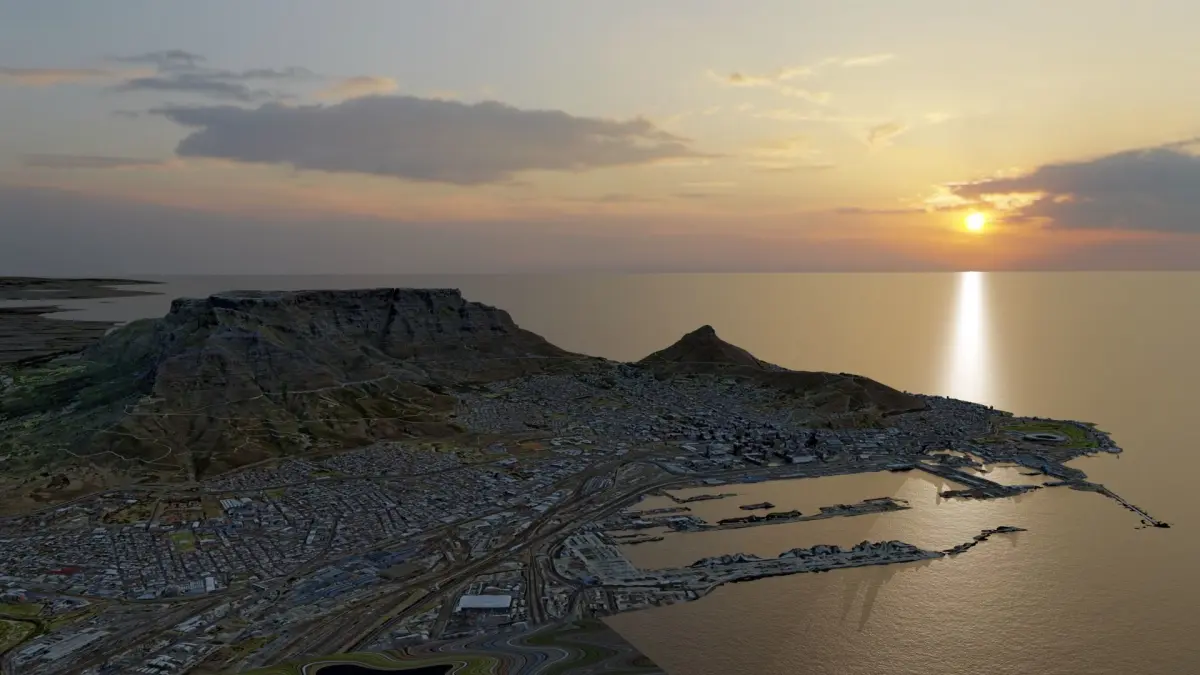 In this model I'm including both options, rendered landscape (already published) plus the digital elevation model. You can easily switch between both on terrain material settings. Triangulated mesh, full scale and georeferenced in UTM projected coordinates, with controlled precision to ensure proportions integrity. This was developed from aerial imagery mainly for analytical purposes (hydrological analysis, elevation gradient analysis, linear and volumetric measurements, others). So, buildings and small size objects shows low resolution. Nonetheless I found the geological features very interesting and decide to check how it would result after some rendering work. The model was developed in metric system, approximate area 7900ha/19500ac, diagonal length 12km/7mi, height difference between top and ocean level 1070m/3510ft. The package include (.obj) file plus (.mtl) and (.jpg) base texture. Blender scene is also included (as shown on thumbnails). The model was reduced to 1/10 its original size and brought close to origin to improve rendering performance but (.obj) will show up at original scale and georeference. I added a ocean plane, a horizon plane and some light settings, morning, high noon and sunset. To change it you just have to switch world output nodes and select the light source (labeled accordingly). PLEASE READ THE DESCRIPTION AND CHECK ALL THUMBNAILS TO EVALUATE PACKAGE CONTENT IN DETAIL. Feel free to contact me if you have any doubts or if want a similar model from another location.