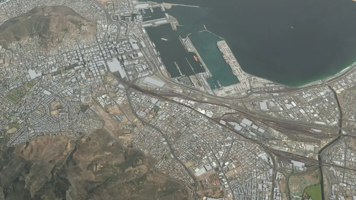 Cape Town city and surrounds, South Africa. Accurate geo-referenced model, ideal for arch-viz, city planning or simulations. 1-to-1 real-world scale in meters.