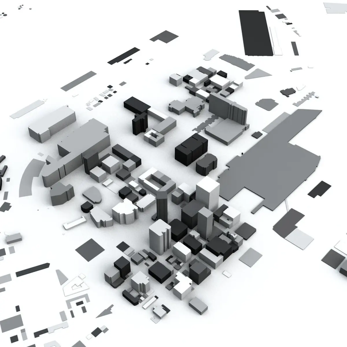 These models are designed to show and present the city/area in the title in a minimalistic concept. They show a close to exact streets and buildings alignments and building heights (excluding parts where there is no or insufficient data to build 3d geometry) therefore they can be used for many purposes but they are not designed to build ie. high precision urbanscape.