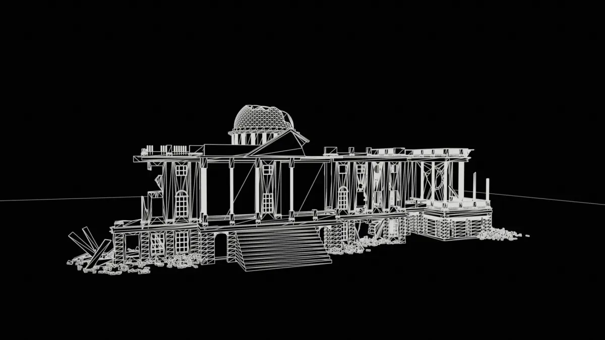 Model of a semi-destroyed capitol, for staging. The texture has been redesigned to 4K, and some details of the mesh have been repaired, achieving a low or medium resolution model. The reenactment evokes a future of war and chaos as a result of wars