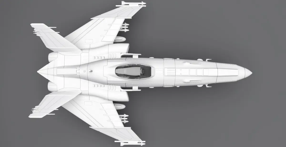 body cut in parts, wings, lg, mmissiles, tail etc separate .