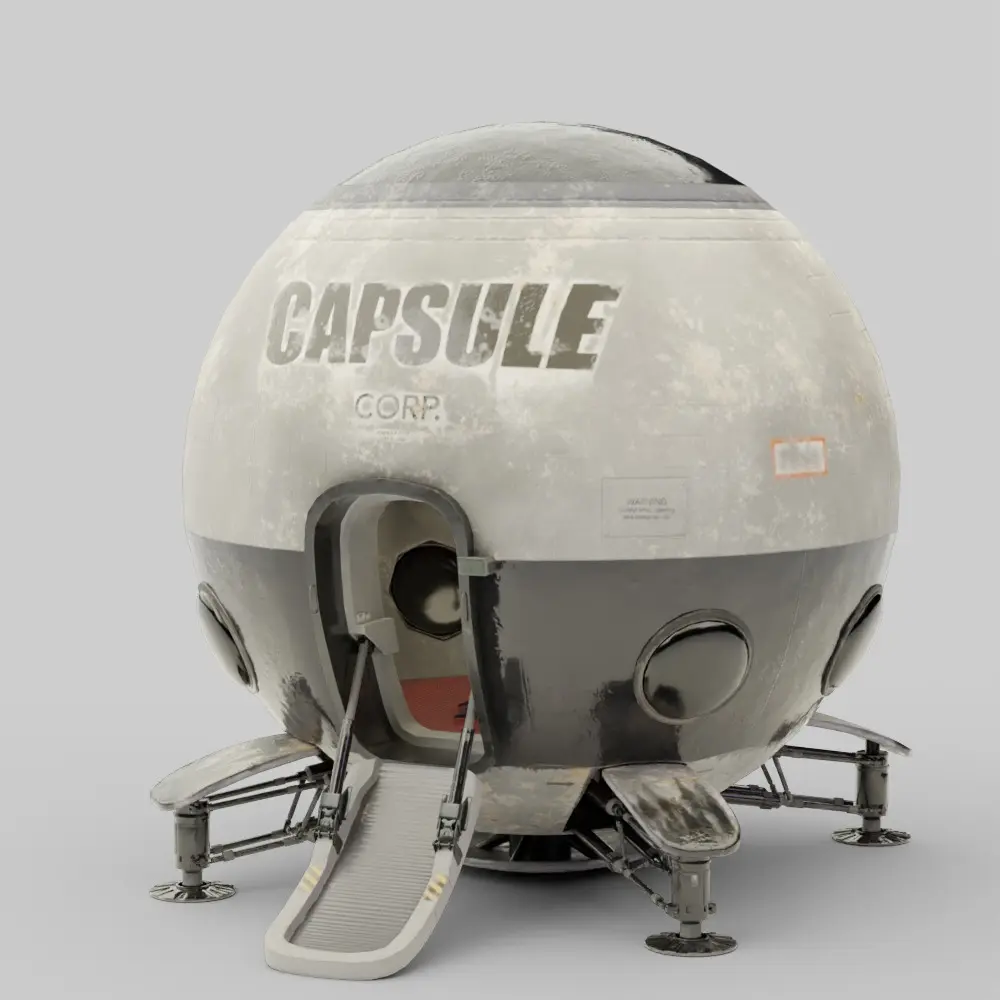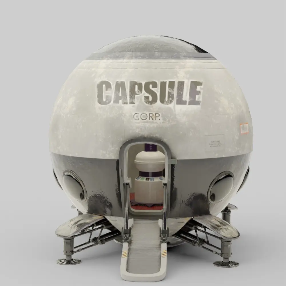 The Capsule Corp Space Pod is a highly detailed, sci-fi Blender 3D model inspired by the iconic travel capsules seen in the Dragon Ball series. Featuring a weathered and realistic texture style, this model blends anime legacy with modern PBR-based rendering techniques. Ideal for use in animation, games, fan art, or cinematic scenes set in futuristic or extraterrestrial environments.