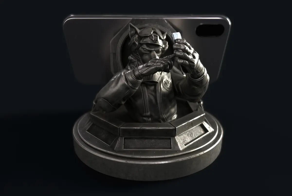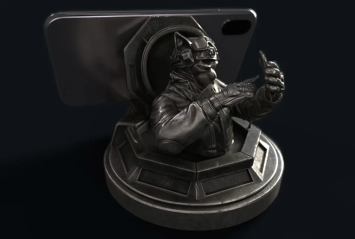 Stylized phone holder, or just a figurine for 3D printing.