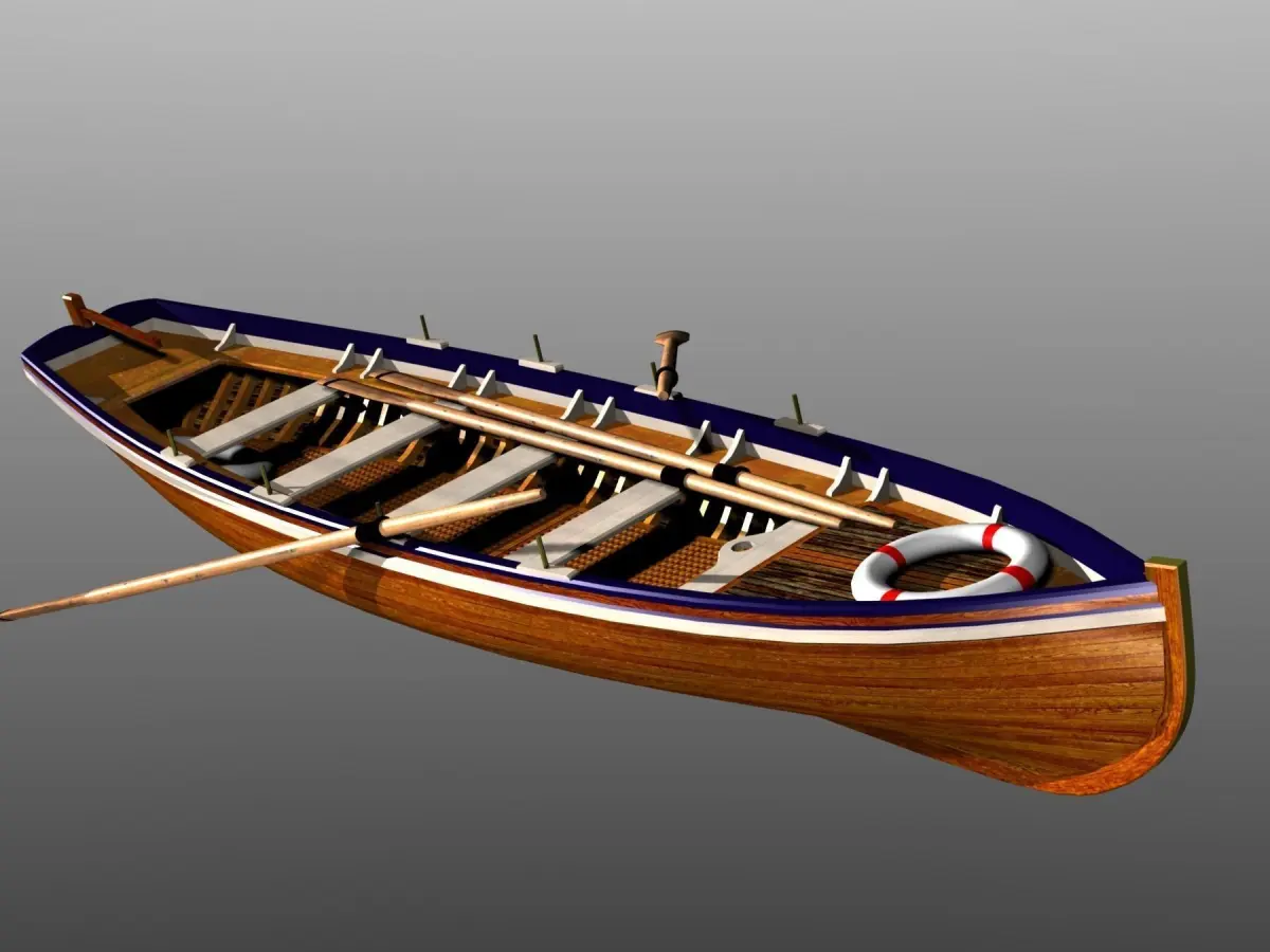 Detailed 3D Model of row/sail Captain's Gig boat, like the one used on board of XIX century Clippers.The project is an in-scale model of the boats used on the Cutty Sark (her model can be found in this web site).