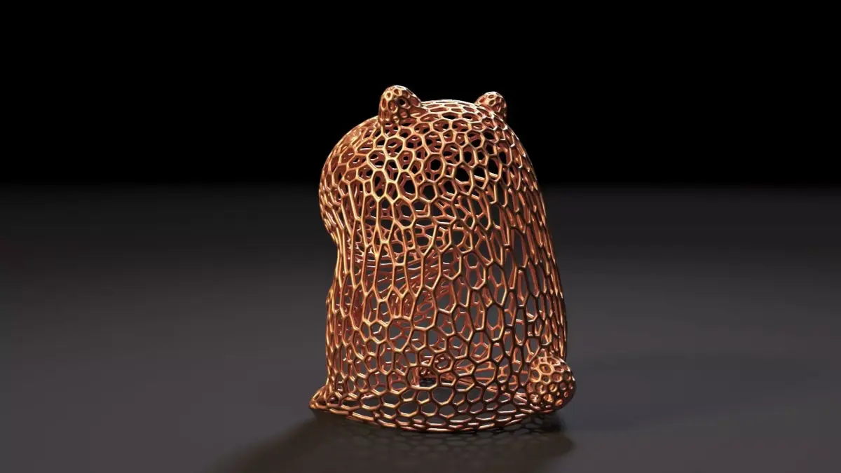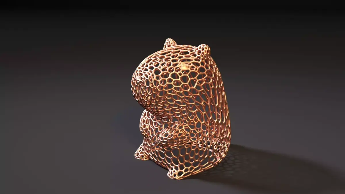 This original 3D model depicts a cute capybara made in Voronoi style using a mesh pattern of polygonal cells, creating a modern and aesthetic appearance. This design gives the figure dynamism and grace, making it an attractive decorative element.