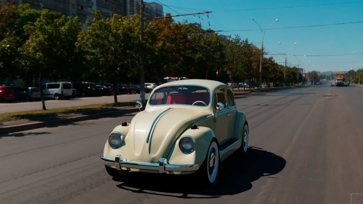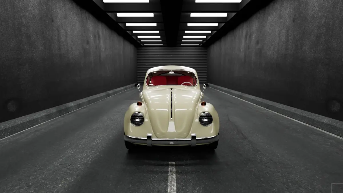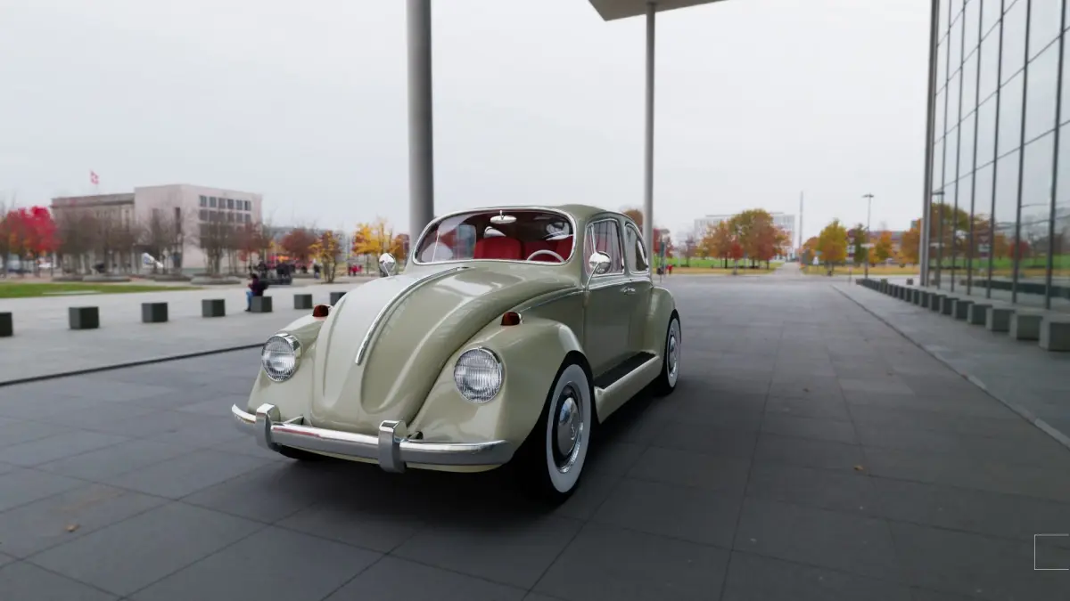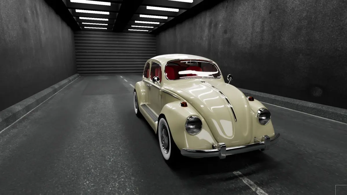 This 3D model of a 1955 Volkswagen Beetle was meticulously crafted using Autodesk Maya. It accurately captures the iconic design features of this classic vehicle, including its rounded body, split windshield, and distinctive front grille The model features a high level of detail, including the intricate curves of the body, the texture of the seats, and the fine lines of the headlights and taillights.