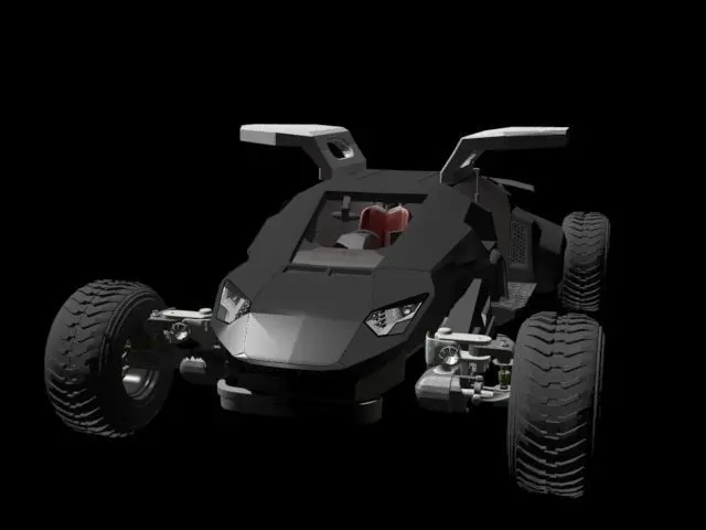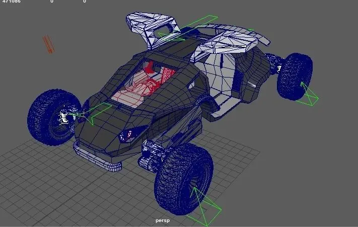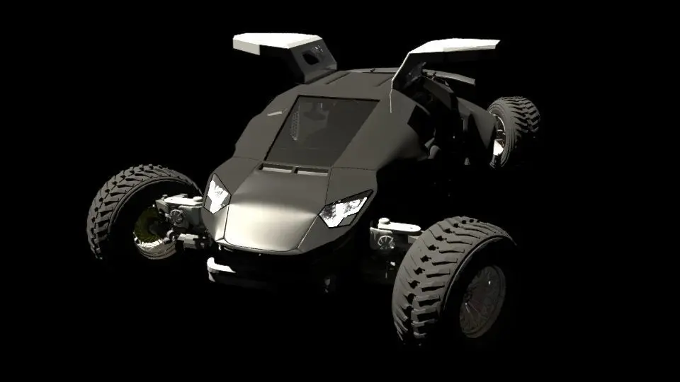 Car with 4x4 drive, 4 arms/limbs as a part of suspension - it enable to control of position of upper body car.It's possible to create rib, sceleton to control each arm separately, just front/ rear pair or all together. Interior of the car have some detail dashboard, seat, steering wheel, mirror. There are door that can be opend, spoiler, nice looking headlights, drive with cardan joint, spings, tyre with brakes - break disc, barrel.There are some texture and UV mapping - not all element - only where is required.