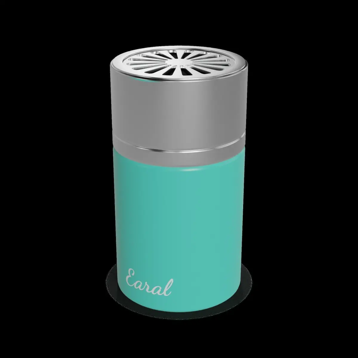 Car Air Freshener: This car air freshener comes in a sleek, silver aluminum canister. The packaging is modern and minimalist, with a small window that allows you to see the colorful gel inside. The scent is a refreshing combination of mint and eucalyptus, providing a cool and invigorating atmosphere in your car. The canister is compact and lightweight, making it easy to place in your car's cup holder or console. The label on the packaging includes the text Cool and refreshing fragrance and Long-lasting formula.