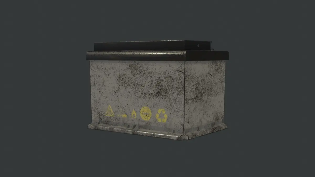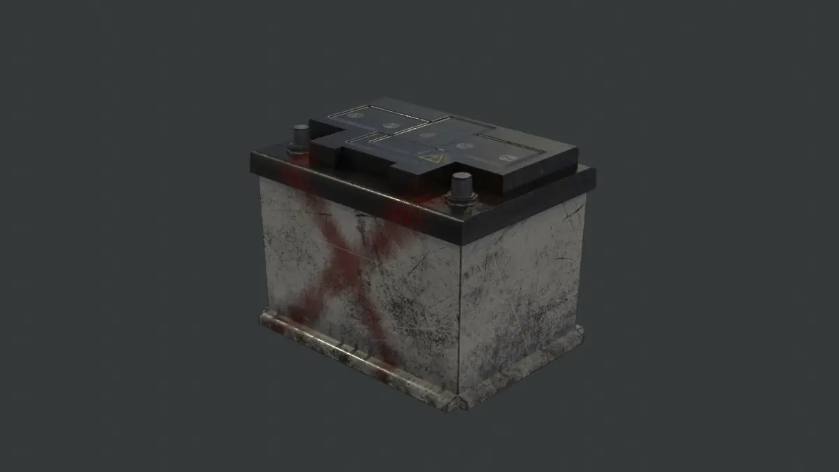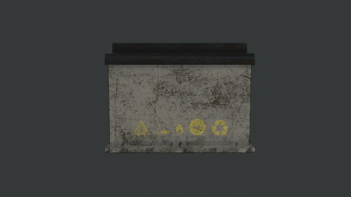 Introducing dirty and graffitied car battery with all the warning signs.