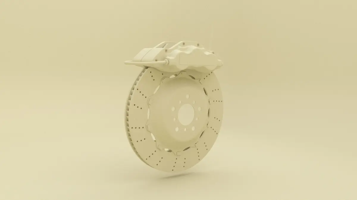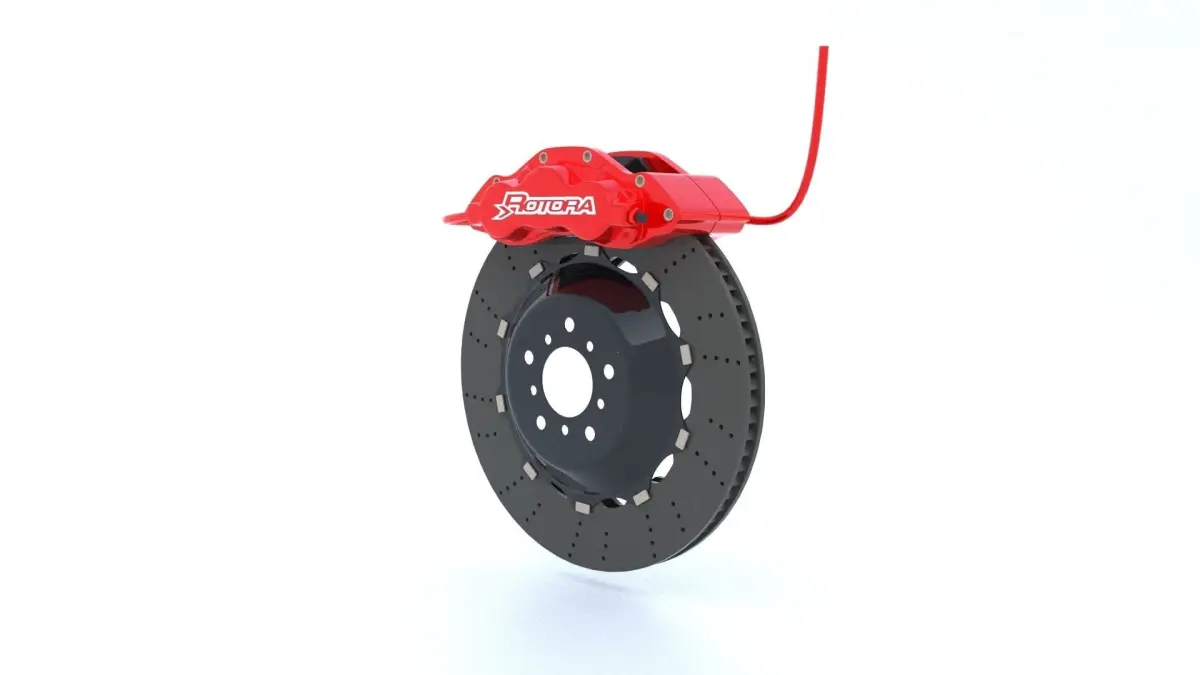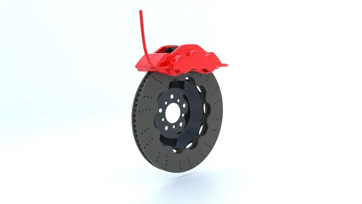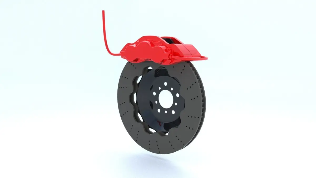 3d model of brake disc and caliper set with simple materials and UV'd texture of brake brand easy to change.