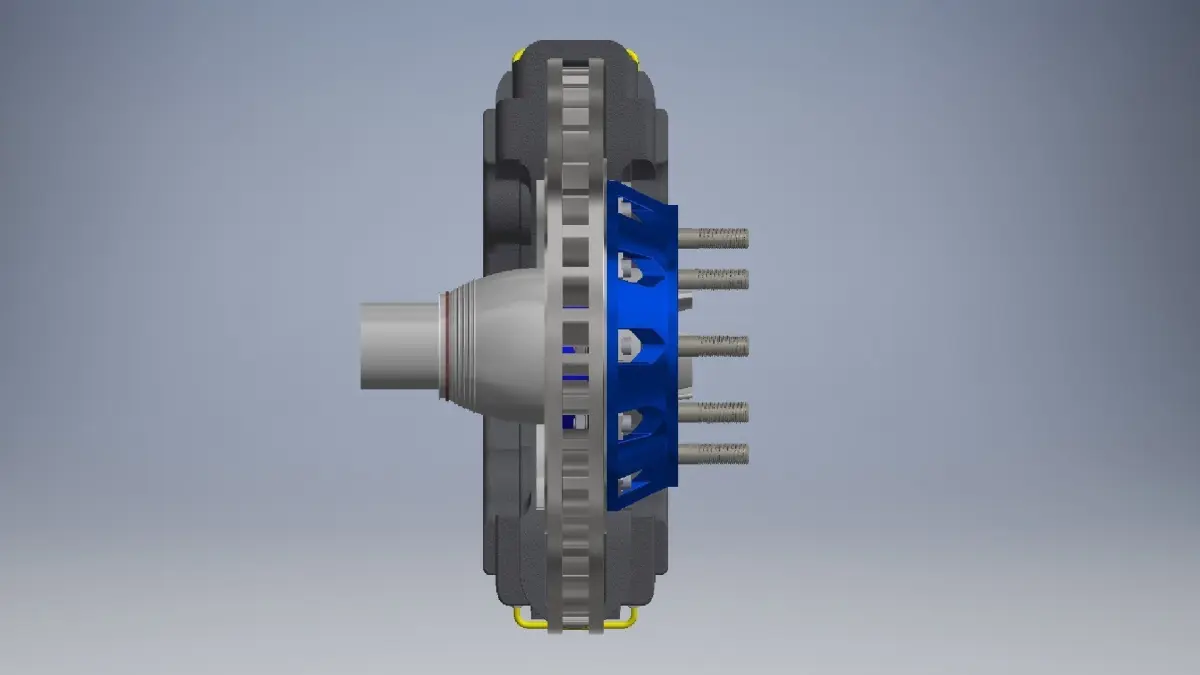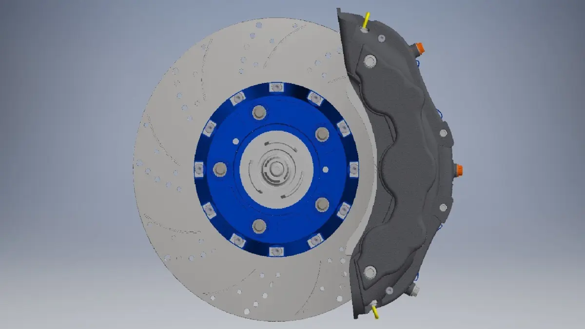 The brake disc is the rotating part of a wheel's disc brake assembly, against which the brake pads are applied. The material is typically gray iron a form of cast iron. The design of the discs varies. Some are solid, but others are hollowed out with fins or vanes joining the disc's two contact surfaces (usually included in the casting process). The weight and power of the vehicle determine the need for ventilated discs. The ventilated disc design helps to dissipate the generated heat and is commonly used on the more heavily loaded front discs.Discs for motorcycles, bicycles, and many cars often have holes or slots cut through the disc. This is done for better heat dissipation, to aid surface-water dispersal, to reduce noise, to reduce mass, or for marketing cosmetics.