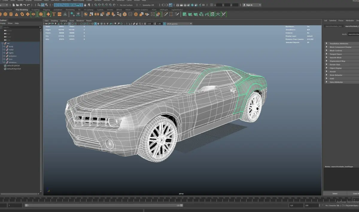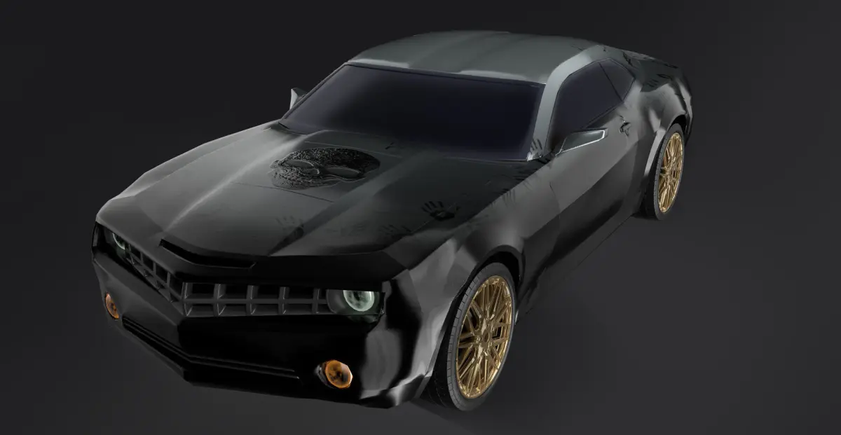 Camaro replica with death strandind inspired textures, low poly structure but with detailed wheels and tires, UVmapped easy to paint, can be subdivided, high quality textures recommended for unreal engine 4 or 5, scene is organized in groups and materials