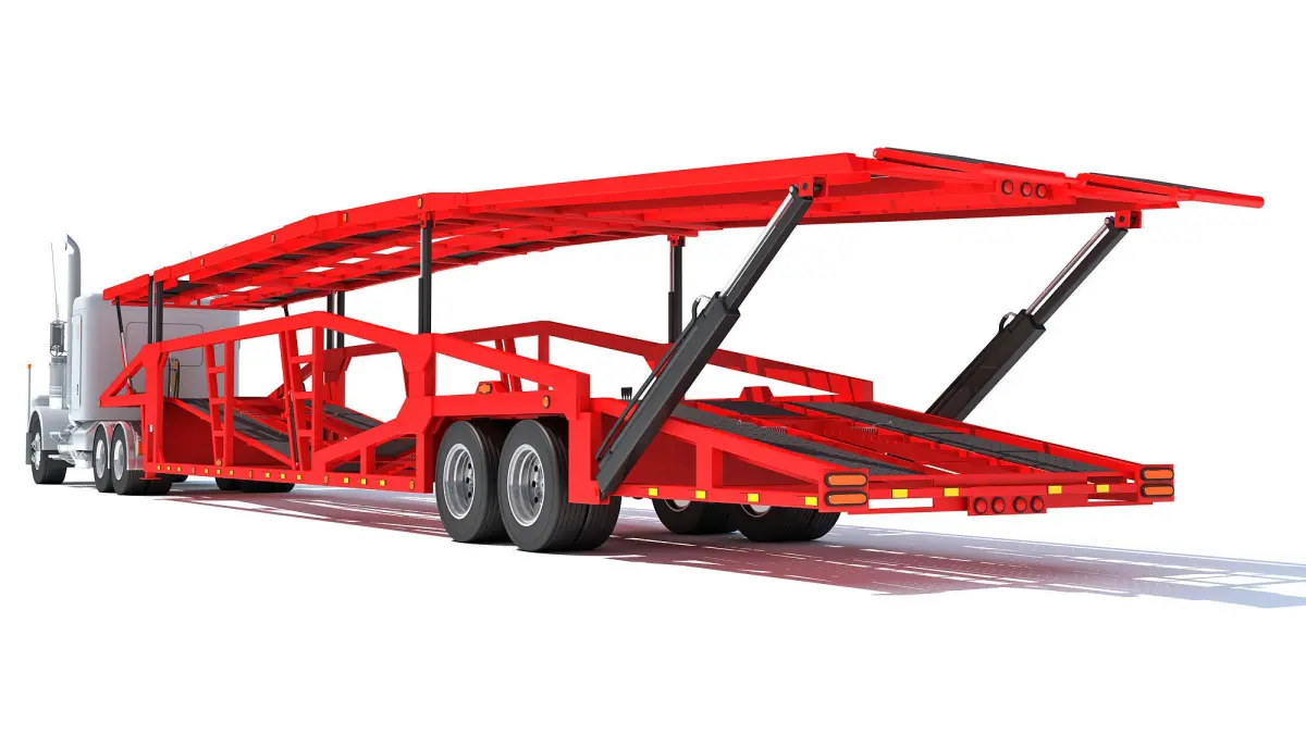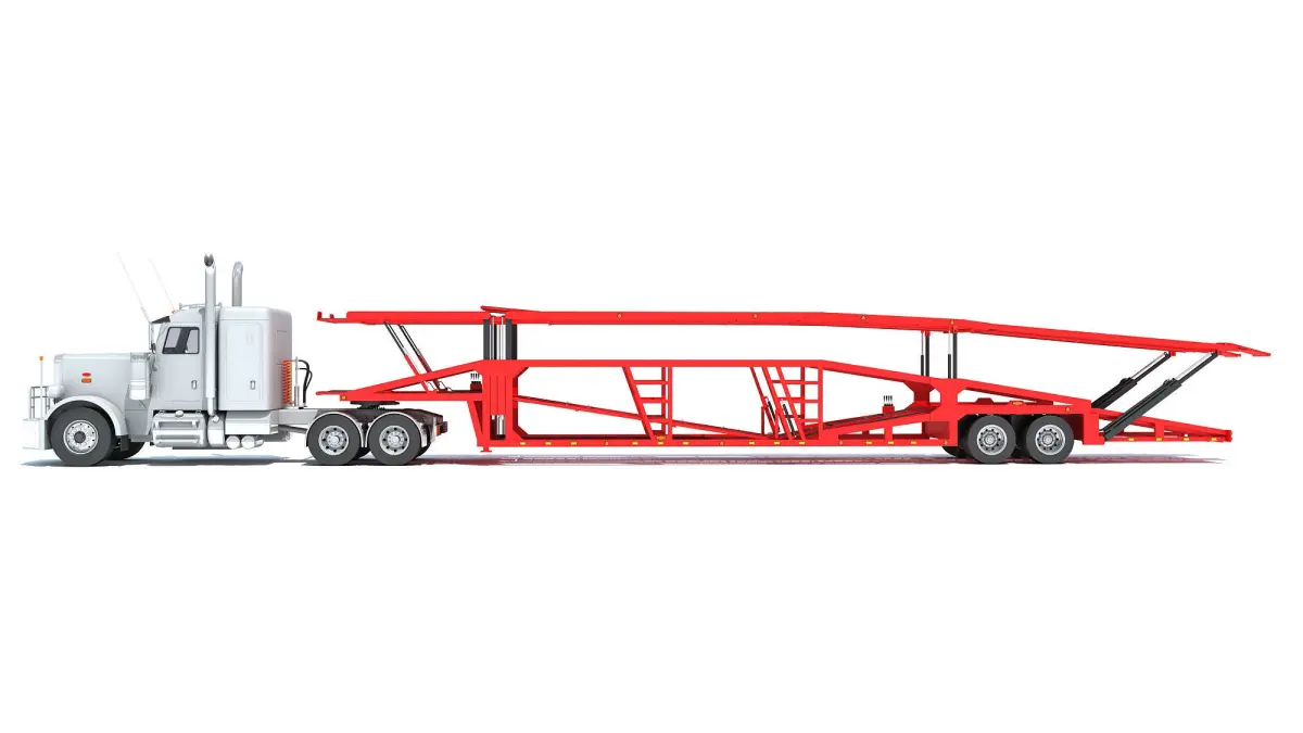 Highly detailed 3d model of semi truck with car transporter trailer.