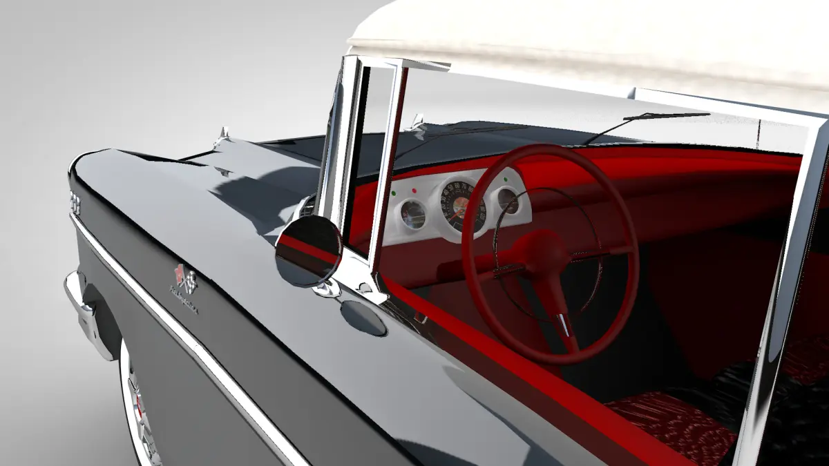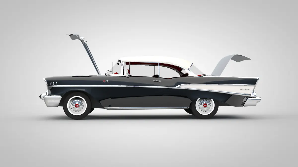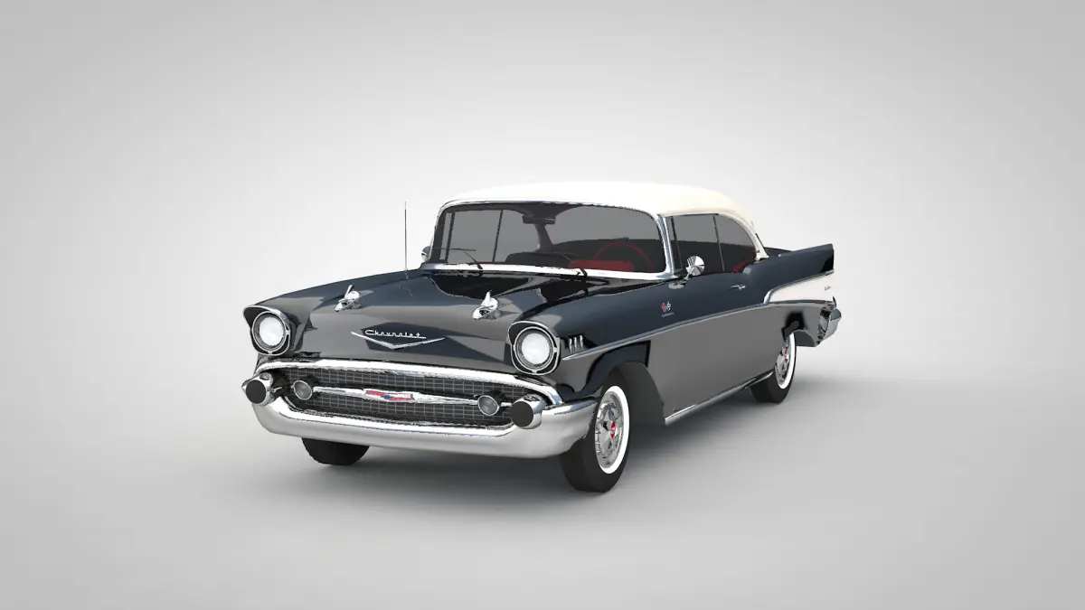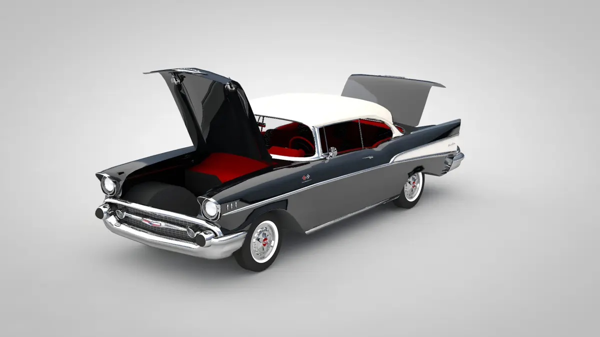 A Black_Red Chevy Bel Air car created in Cinema 4D R19 using a polygonal mesh and exported to 3ds, dae, fbx, stl, obj, and blend files.The blended textures are solid and have 2k UV mapping.The trunk and hood open and are already on their correct axes.The wheels are also separated.1957 Chevrolet Bel Air Dimensions: length, 508 cm; width, 185 cm; height, 150 cm; wheelbase, 292 cmI hope you enjoy it and find it useful in your scenario.Thanks for visiting, renatodalle.