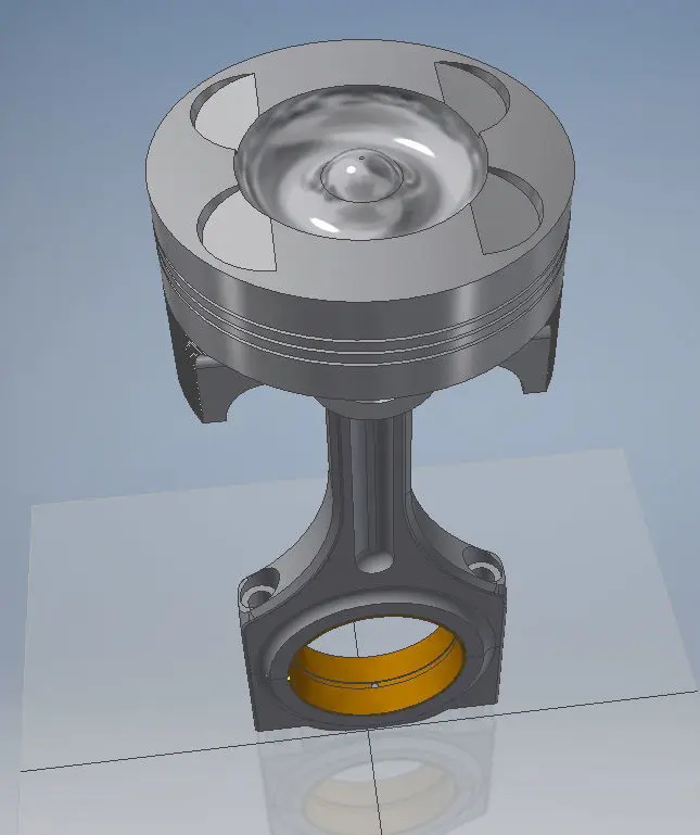 Car engine piston made with Autodesk Inventor with precise dimensions and measurements.
