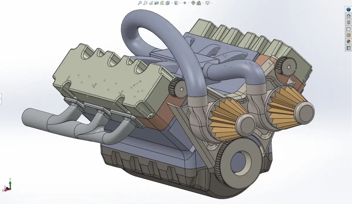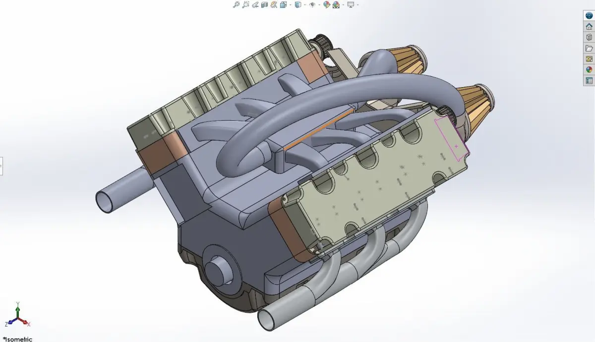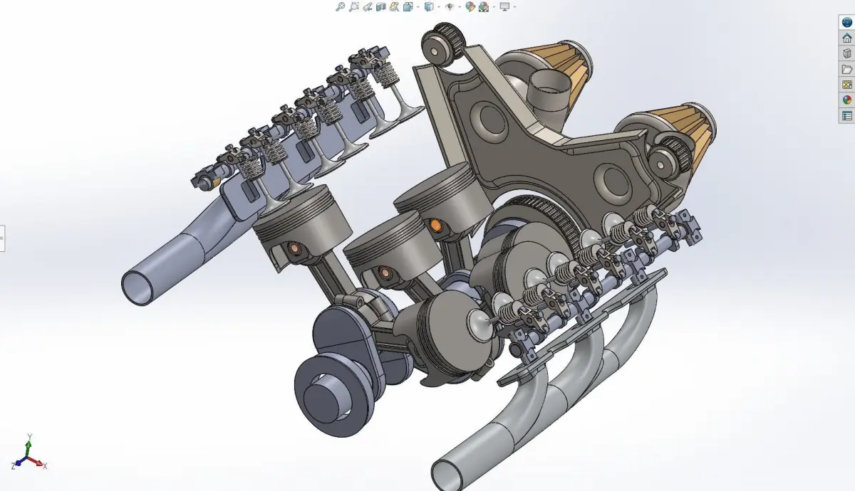 Car engine V6 part design are made in solidworks and assembled with respective constraints inside assembly section for animation and simulation. This highly detailed model can show you how the engine works, from inside and outside. Parts of the engine are seperatly added as a archive file.
