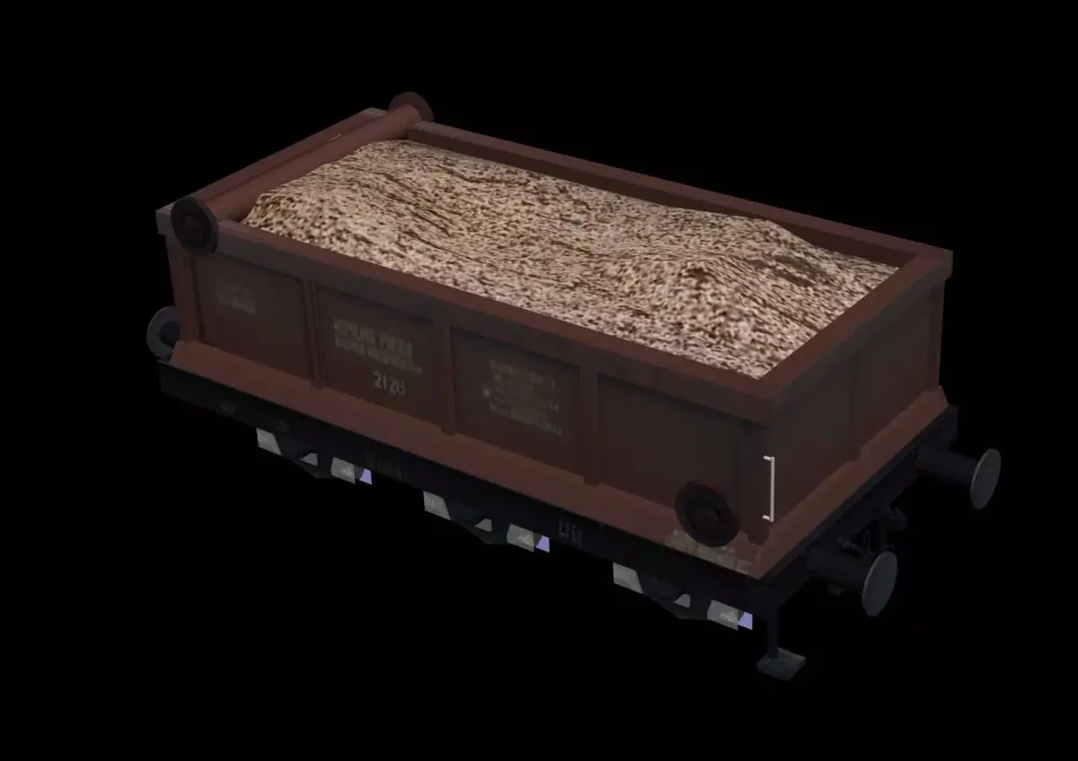 Model of a three-wheeled sand car type 15W. Available with and without sand, the model was originally designed for unloading onto special chute bridges.