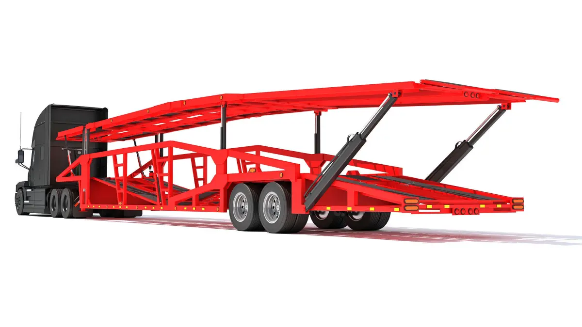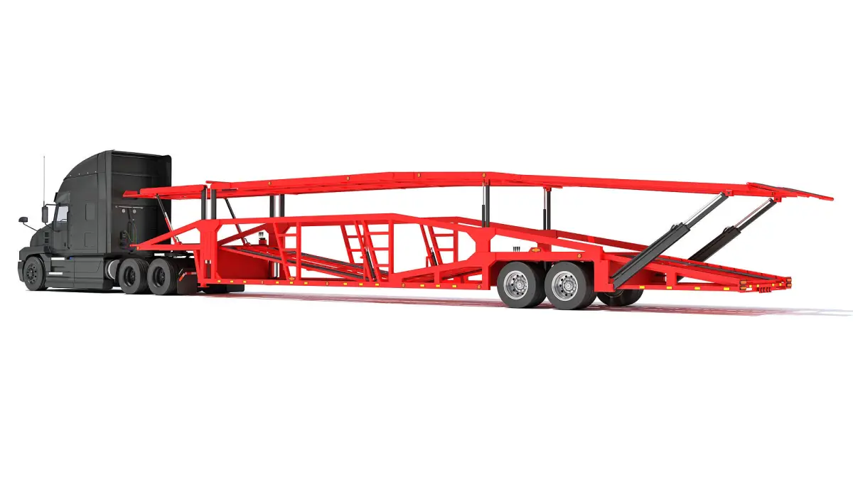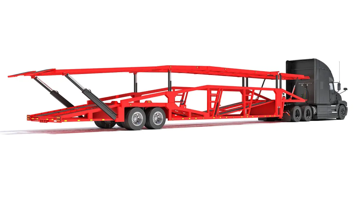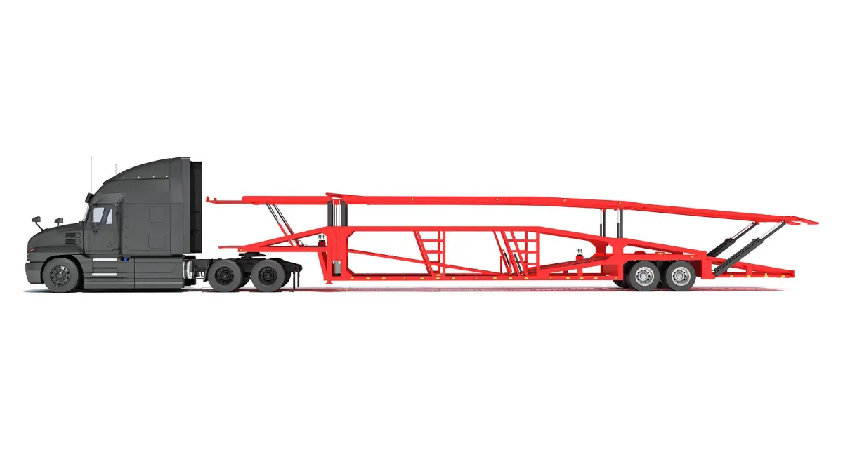 Highly detailed 3d model of semi truck with car hauler trailer.