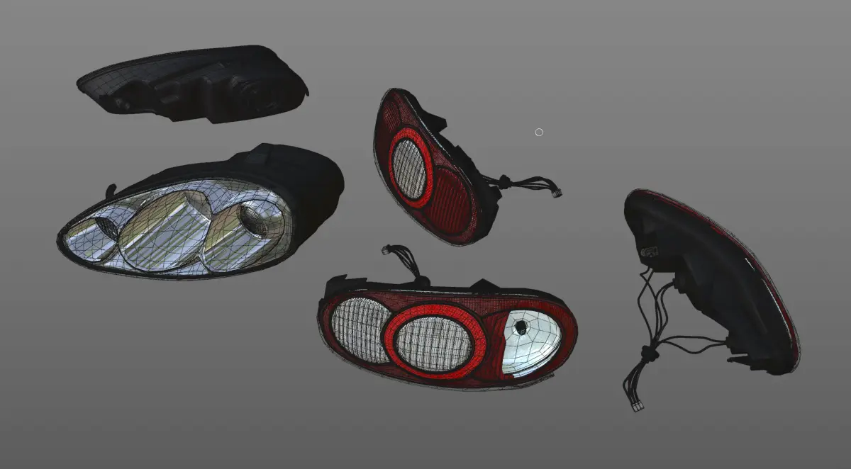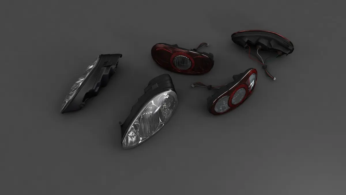 This little car light package contains a pair of headlights and taillights, as well as a broken taillight. These lights are from the 2002 Mazda MX-5 NBFL