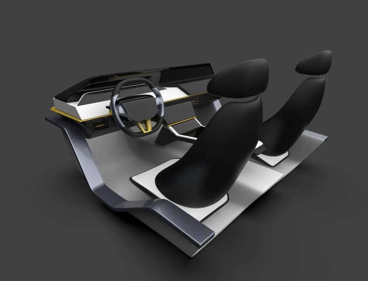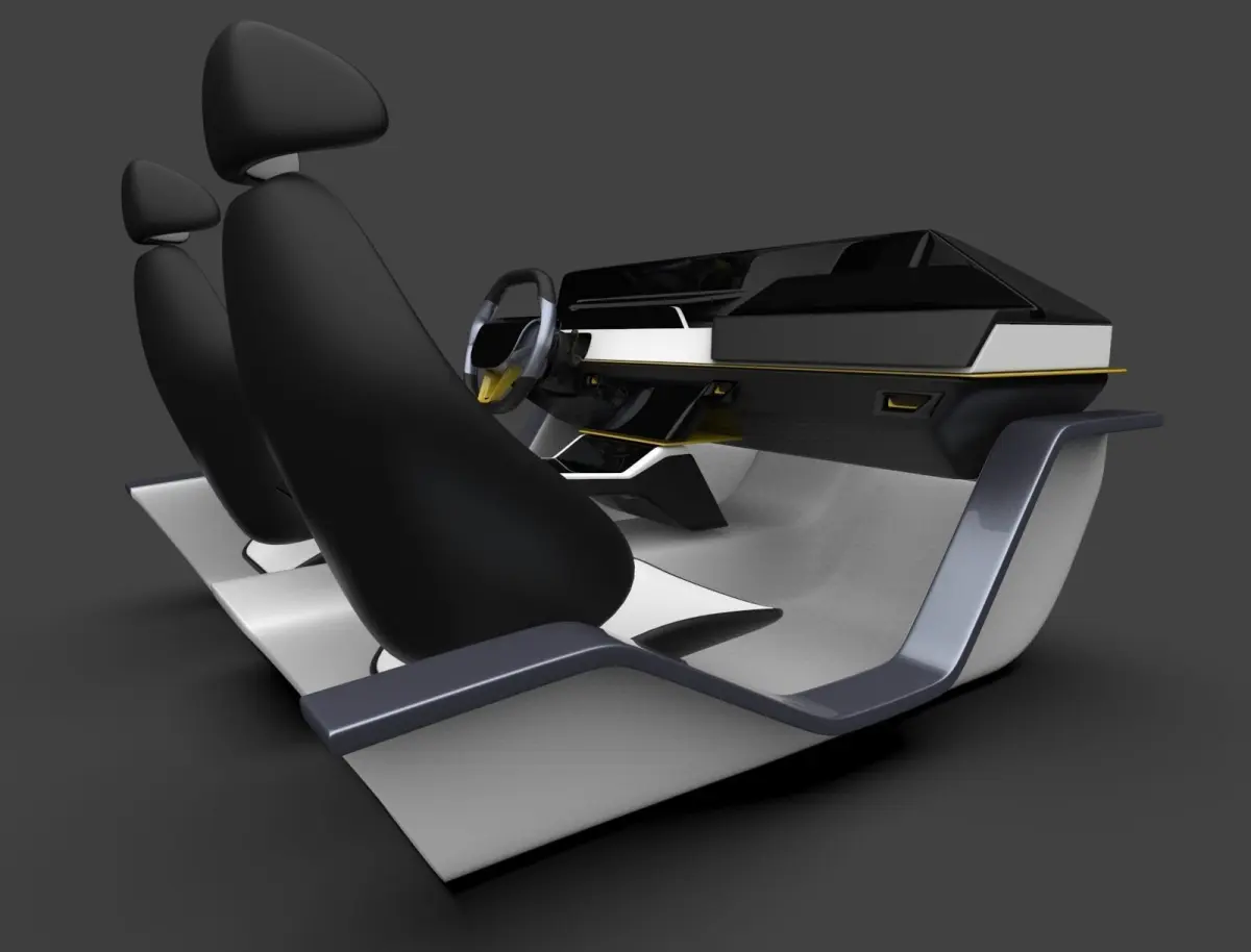 Modern car interior concept for connected carsDashboardSteeringSeats