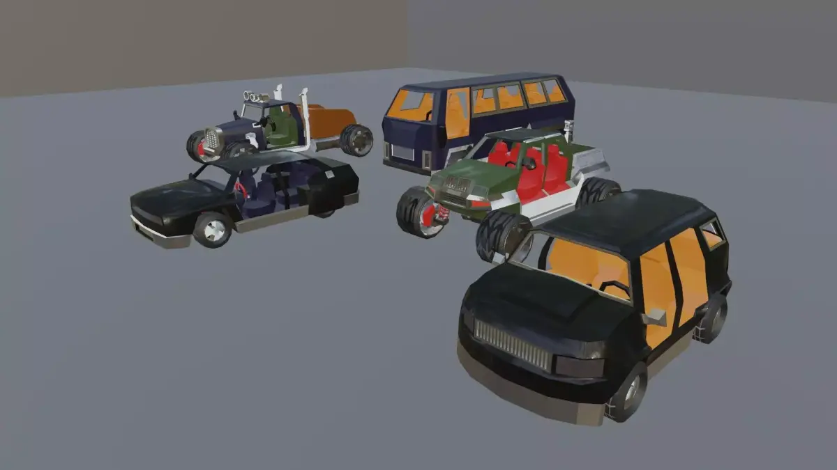 LOW POLY carOptimal for gameexport fbx; glbfive Car outside, inside, underneath40k triangles resolutionskinned with blender 3.6PBR texture 2kwheel paint