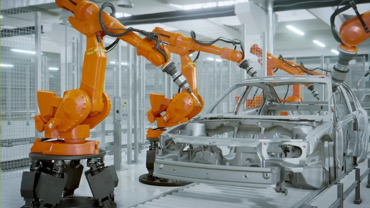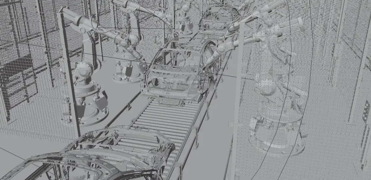 Car Manufacture 3D Scene. Ready for Blender. Eevee and Cycles Ready. PBR Material. All Industrial Robots are Rigged and Ready for Animation.