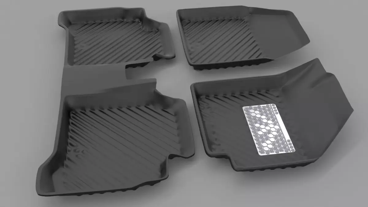 Front and rear rubber car mats with brushed steel pads