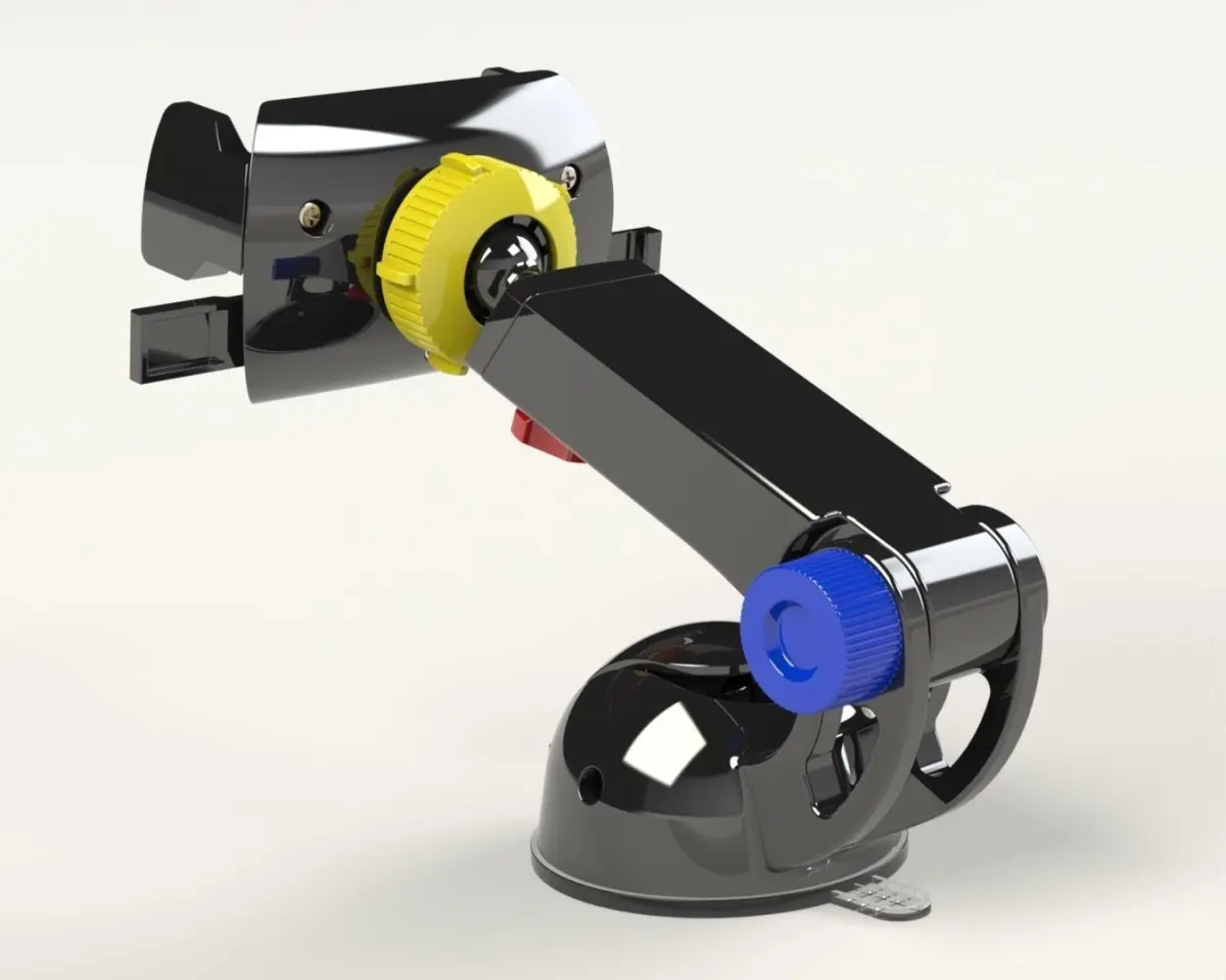 This is full design of mobile phone holder, moreover including full design of the mechanism of sliding which can easly hold the mobile phone.This design can be manufactured using injection plastic. You could 3d printed the full design, however you need slightly make some modification on some parts.