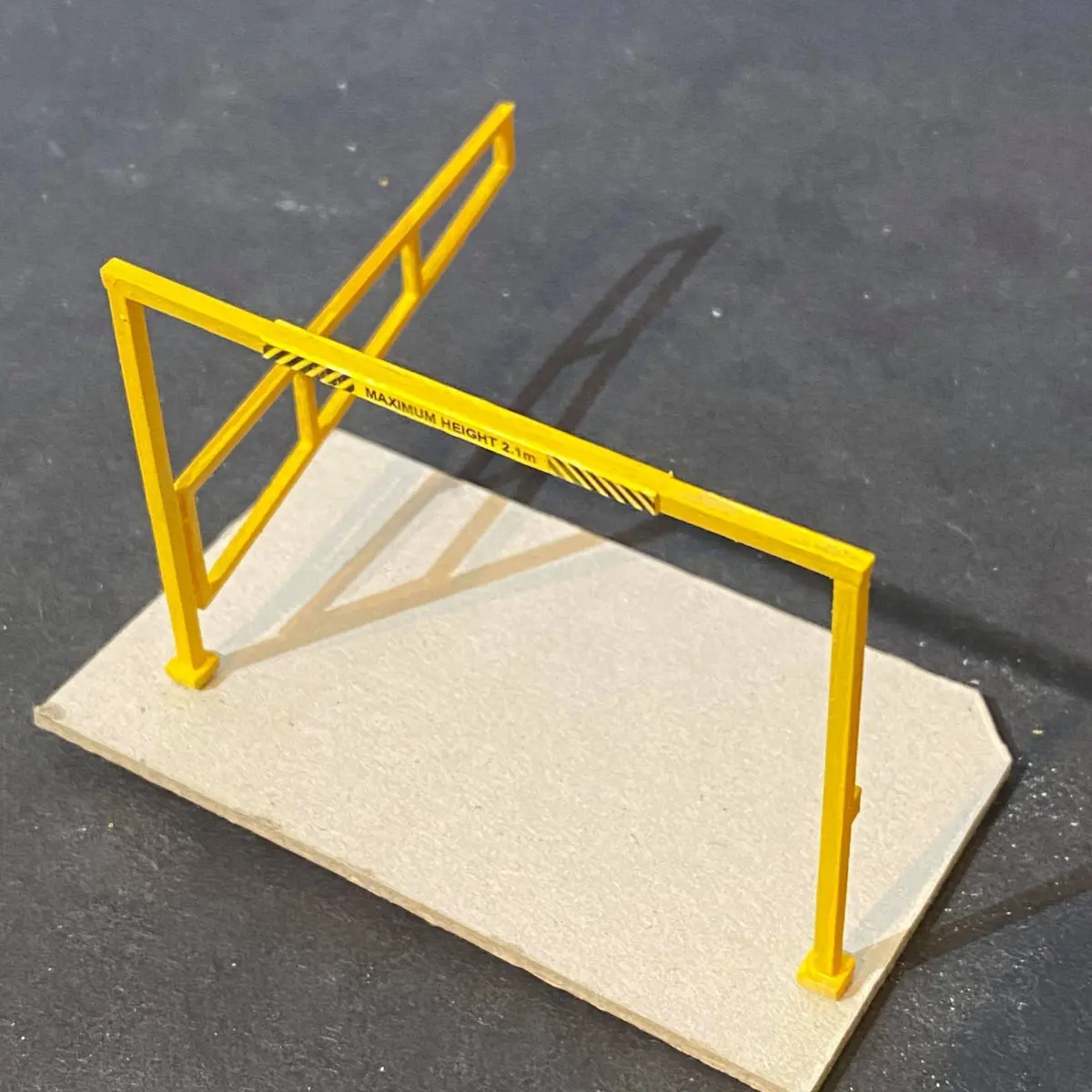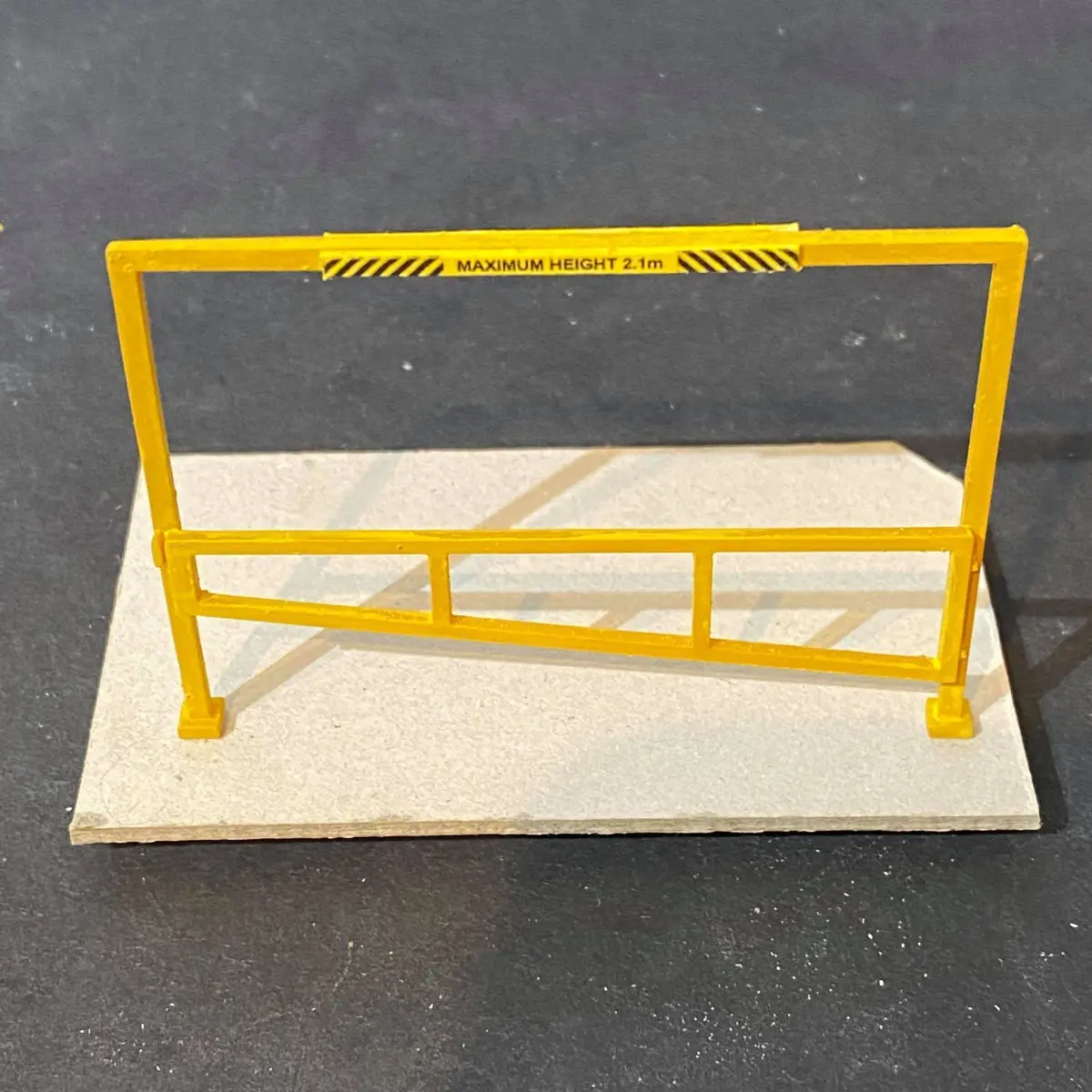 I've needed a gated height restriction barrier for my model railway. I've also created a few other versions covering 3,4,5 & 6 metre real world widths. The maximum clearance as designed is a scale 2.2 metres (50mm) - you could shorten the uprights if you want a lower barrier.