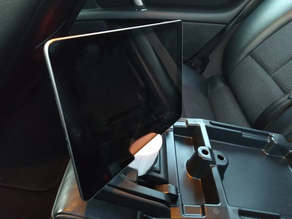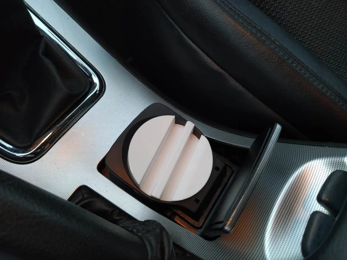 Small phone holder which fits in a cup holder of your car. It safely holds your phone and fits in any standard size cup holder. I use it daily and it works great. It has a smaller 8.8 mm sized slot and a larger 10.5 mm slot so it can fit any size phone or tablet. Fits tablets (android or ipad) as well.