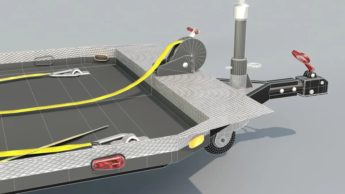Vehicle transport platform built in Cinema 4D with excellent topology and exported and revised to other files.The model has solid texture variations and UV mapping.The model is in its original size and the connections are movable, the yellow tape of 8cm x 400cm (UV) in Cinema 4D is moved by Spline Wrap following the path of the spine.A useful piece in your city scenario. I hope you like it.Thank you, Renatodalle