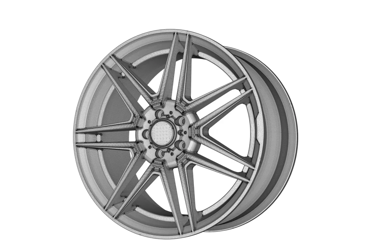 Car rim. It's Solidworks model was exported in other CAD formats:(X_T, IGES, STEP, OBJ and STL). This 3D model can used in producing on CNC machines and for 3D printing.