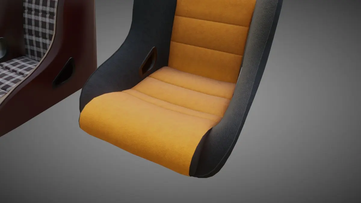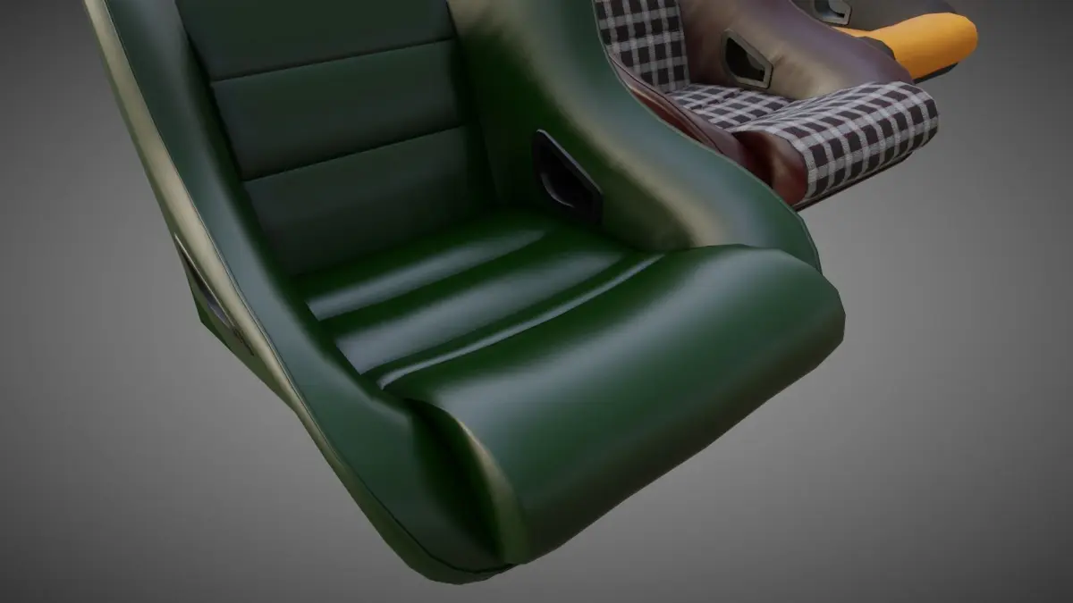 The BF Rally ST sport seats I made for the 911 Backdate model ( https://www.cgtrader.com/3d-models/car/concept-car/porsche-911-backdate-targa ) . You can of course use it universally where you want. The texture sets are in leather, tartan and microfiber variants.Midpoly, PBR, short animation to show the simple headrest rig. All textures are 2K, one texture set per seat.