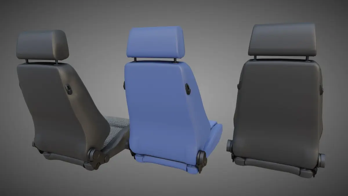 In leather, linen and nubuck variants.Midpoly, PBR, short animation to show the simple backrest rig (in blender file and FBX). All Textures are 2K, one texture set per seat.