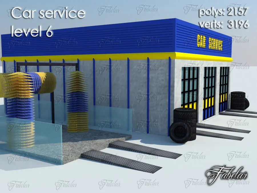 Car service level 6 lowpoly 3D model. Vray, scanline, multiple import formats.