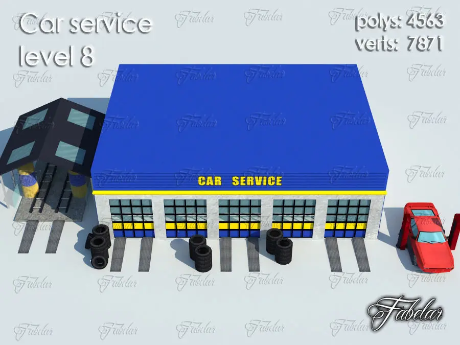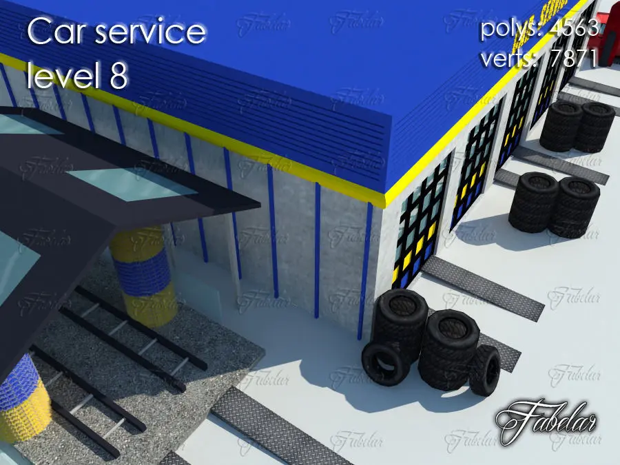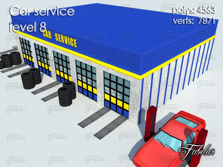 Car service level 8 lowpoly 3D model. Vray, scanline, multiple import formats.