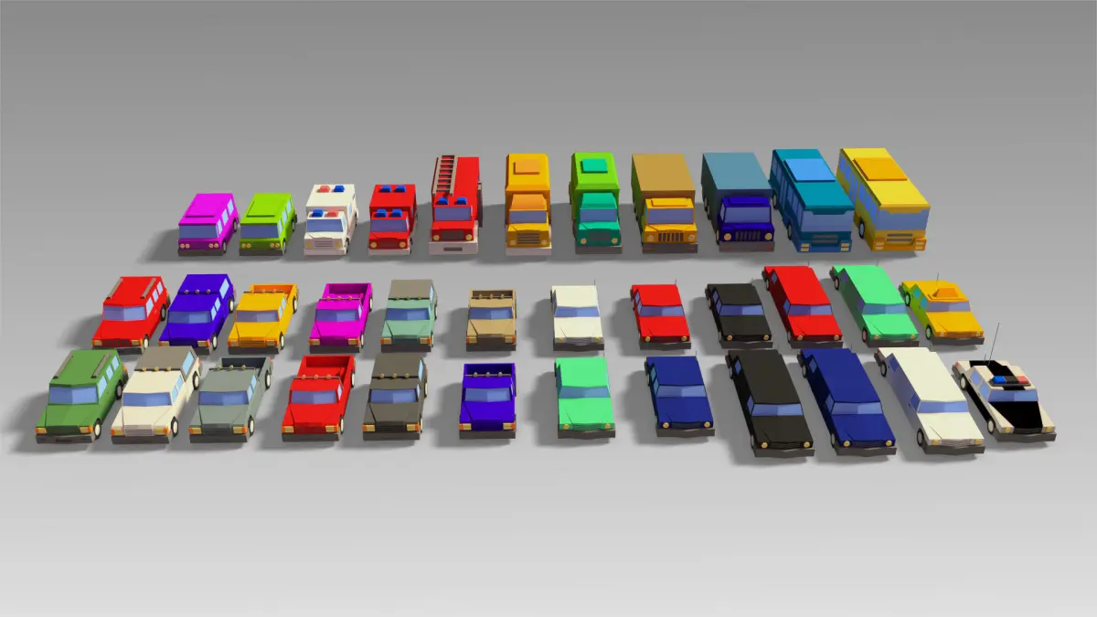 This is a lowpoly Set of 35 Cars.Each model have 500 to 2300 polygons. All of maps have 2048 *2048 Pixel resolution . Maps include : Base Color