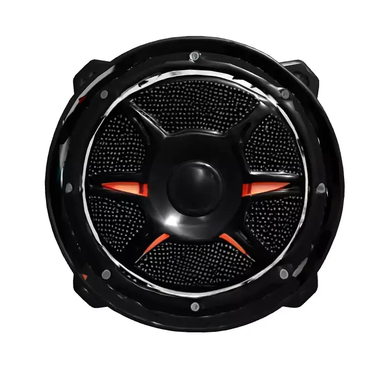 This highly detailed 3D model represents a modern car speaker or subwoofer, meticulously crafted for realism and visual fidelity. It's an ideal asset for various digital applications requiring a high-quality audio component. Possible usage scenarios include enhancing realistic car interiors in game development, creating compelling product visualizations for automotive accessories, or integrating into immersive augmented reality (AR) experiences. Digital artists can utilize this model for intricate scene compositions, while animators can bring it to life in advertising or cinematic projects. The model is optimized for stunning static renderings, delivering exceptional detail and material accuracy for architectural visualization or showroom scenes. It is compatible with a wide range of 3D software and engines, supporting popular file formats such as GLB, OBJ, STL, ABC, DAE, FBX, USD, and PLY. Key features include clean, quad-based topology, ensuring smooth subdivision and ease of modification. It comes fully UV unwrapped with professionally crafted PBR (Physically Based Rendering) textures, guaranteeing realistic material responses under any lighting conditions. The intricate hexagonal mesh, metallic finishes, and subtle orange accents are all faithfully reproduced. This production-ready asset provides excellent visual appeal for high-end renders and close-up shots, ensuring it integrates seamlessly into any professional project.