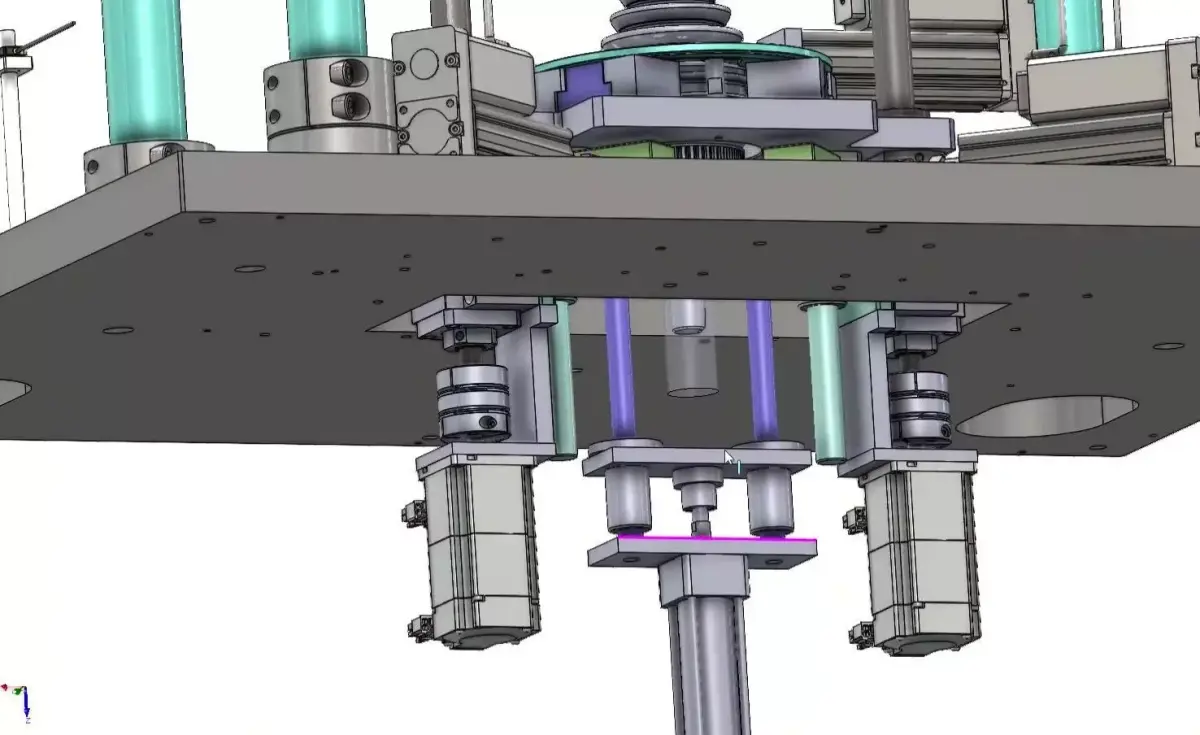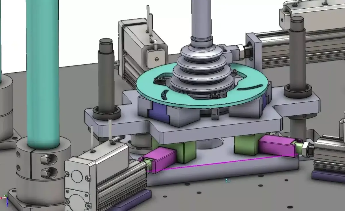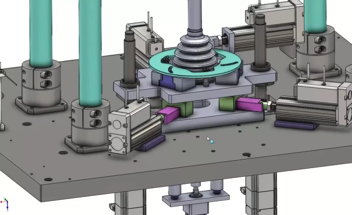 High-precision car steering joint assembly machine 3D CAD model designed for automated pressing operations in automotive manufacturing. The system clamps, aligns, and presses steering joints accurately using servo-driven mechanisms, integrated pressure sensing, and position detection to ensure correct assembly every cycle.Key Features• Dedicated machine for car steering joint press assembly• Servo screw–driven clamping jaws for adaptive diameter controlo Mandrel outer diameter range: 17–35 mm• Servo press system with adjustable stroke based on mandrel heighto Mandrel height range: 200–900 mm• Integrated pressure sensor to monitor press force in real time• Position sensor to verify correct press depth and alignment• Pullback chuck engages force point during pressing for stability Industrial-grade structure suitable for high-volume production linesTypical Applications• Automotive steering joint assembly• Precision press-fit operations• Automated automotive component lines• Machine design validation & factory layout planning