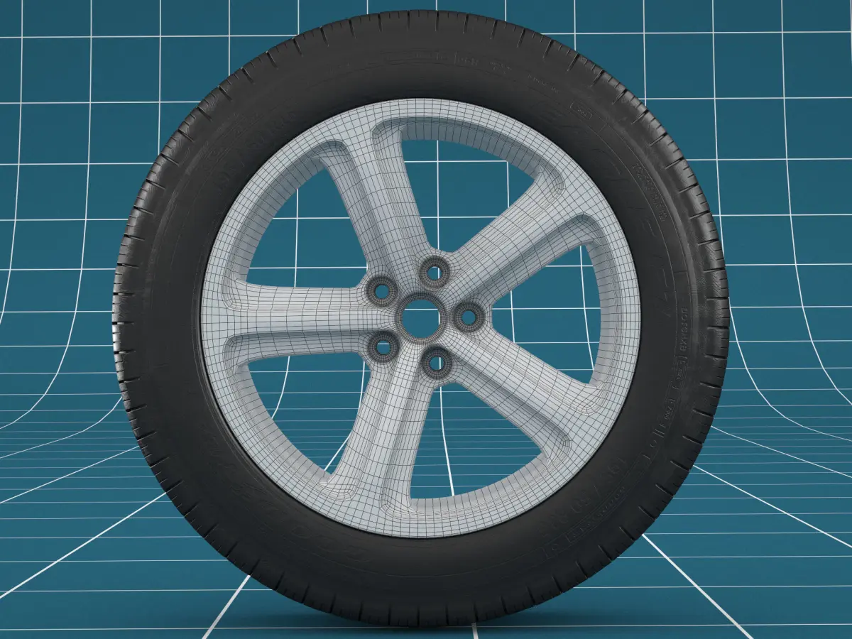 This is a realistic model of car tire. The model of the disk is also there, but it goes as an example. Model is scaled to real world (system units - mm). Model is made in Cinema 4d R16. Texture size 4096*4096.
