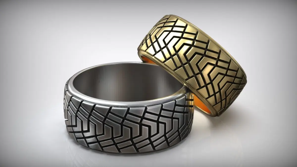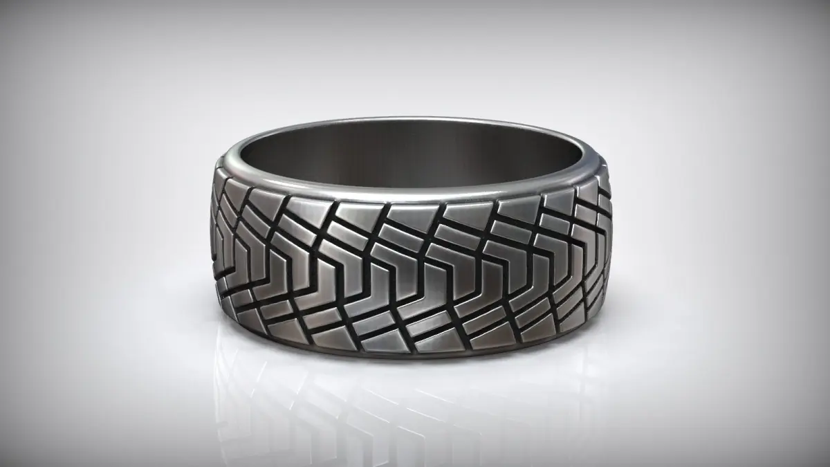 Tire Tread Silver Ring Wedding Band