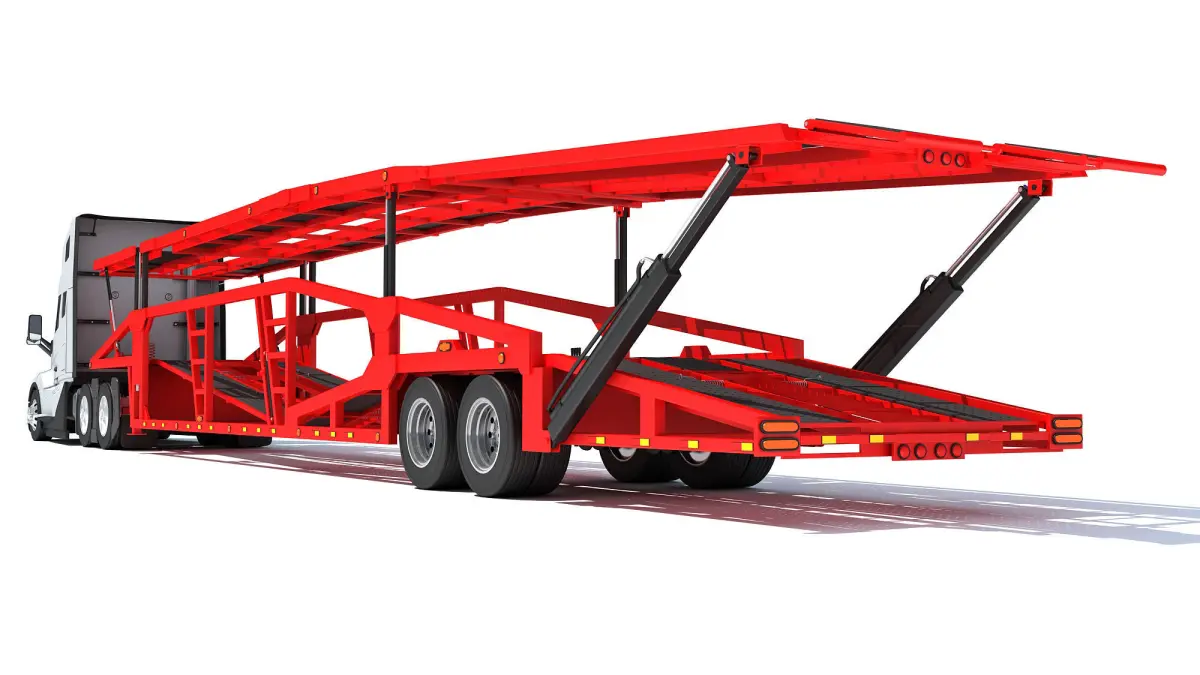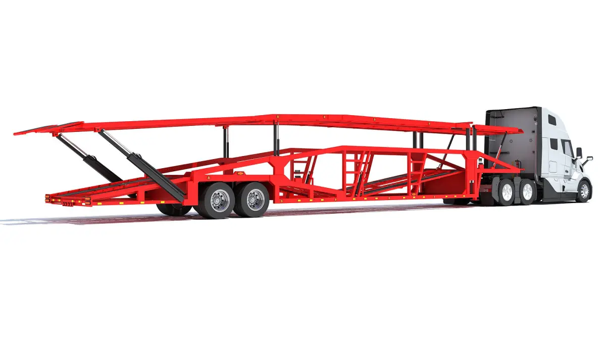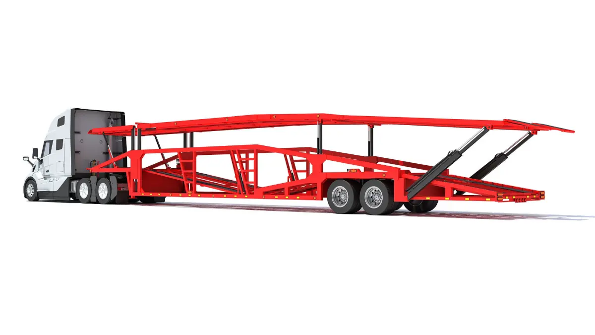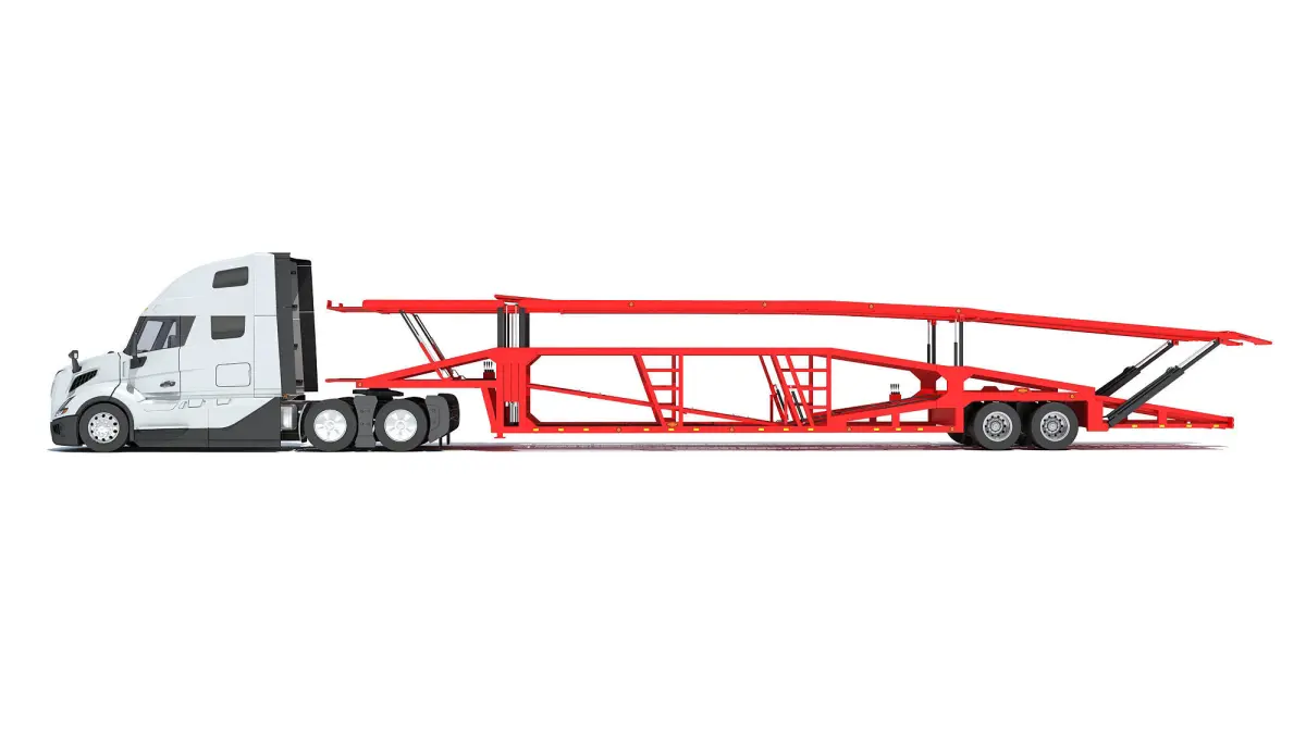Highly detailed 3d model of semi truck with car transporter trailer.