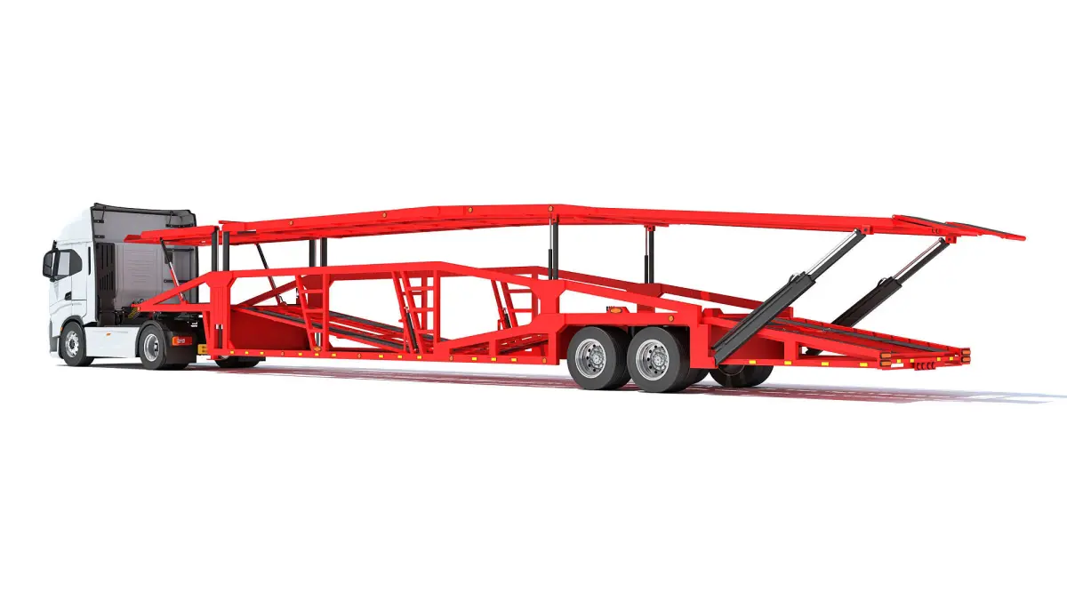 Highly detailed 3d model of semi truck with car transporter trailer.
