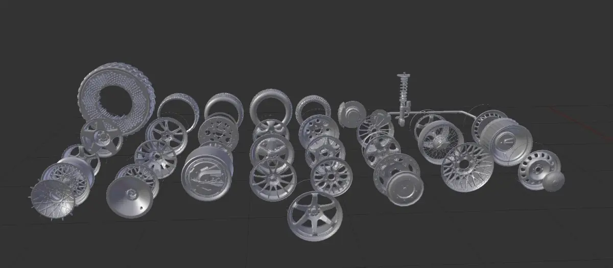 This kit contains alot of different parts - from tyres to rims, suspension, interior and performance upgrades. I've made a wide range of styles, including retro and sci-fi so you can experiment and have fun combining them, searching for the desired vision of your car let your mind run wild.