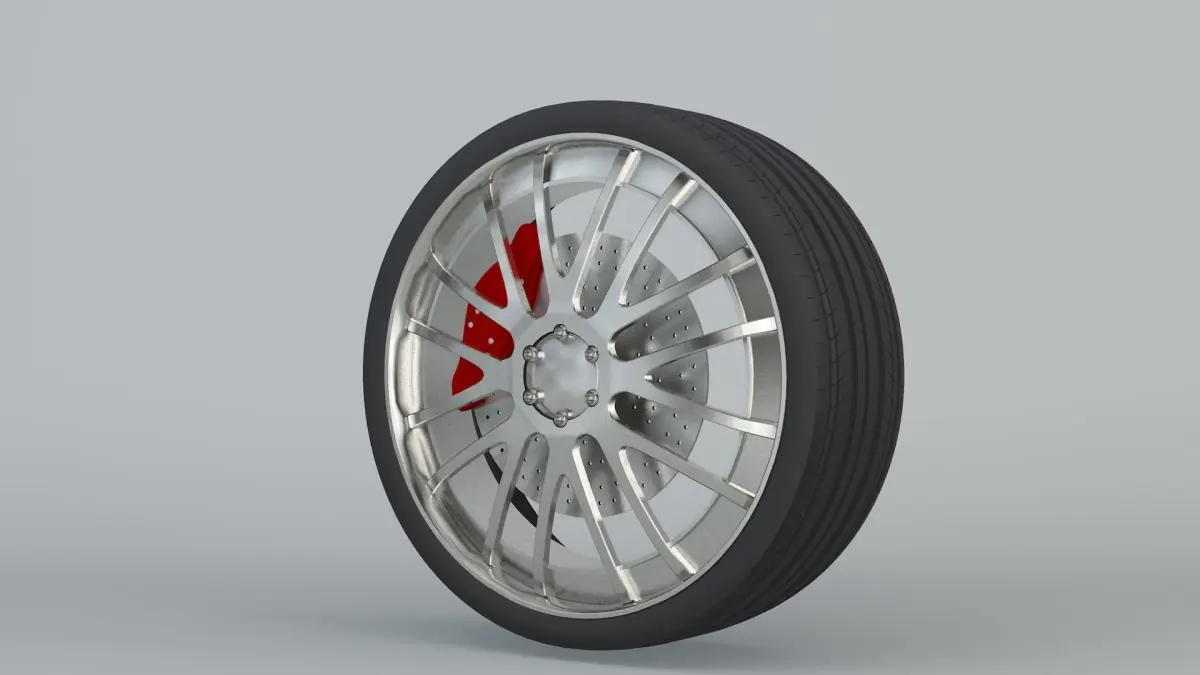 Car Wheel. Rim, Tire and brake assembly included.Great for automotive visualization.Ready to drop into scene.Real-world scale.Clean topology.Modeled and rendered in Cinema 4D.Medium polygon count.Cinema 4D Procedural materials included.Studio and lighting not included.Exported Formats: FBX, 3DS, OBJ, DAE.