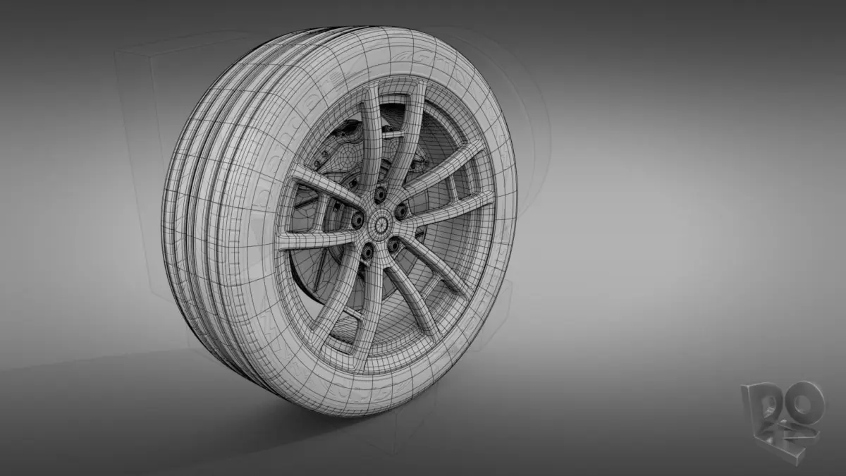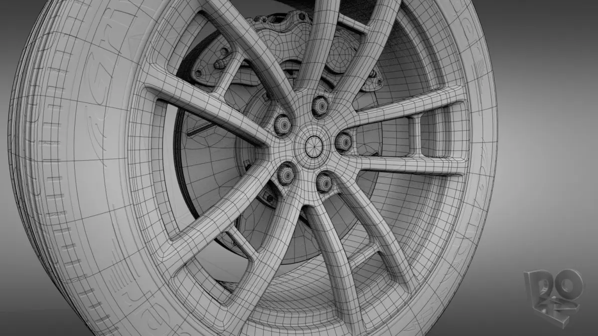 Detailed, subdivision-surface-ready, 3d model of a sport car wheel.