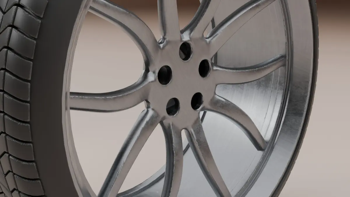 This cart wheel appears to be slightly worn and slightly worn from use.